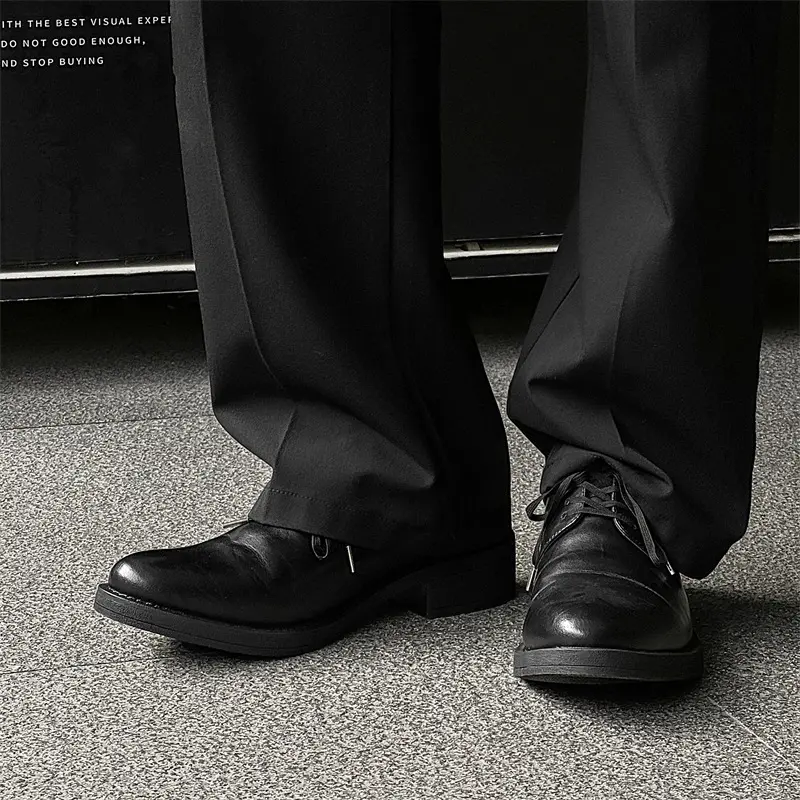 Derby men’s leather shoes with a premium feel—black dress/casual style, height-boosting platform sole, large toe box