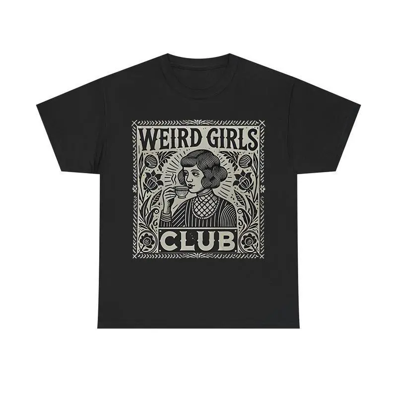 This stylish casual short sleeve T-shirt features the trendy Weird Girls Club pattern with whimsy goth and weirdcore witch aesthetic elements, creating a unique retro alternative style that stands out from ordinary outfits. Designed with a classic crew neck and regular relaxed fit, it provides a lightweight and breathable wearing experience suitable for all-day daily wear. Perfect for street fashion, casual outings, friend gatherings, themed parties, photo shoots and everyday relaxed looks, this tee easily matches with jeans, skirts, cargo pants, shorts and various stylish bottoms. The eye-catching aesthetic print shows your distinctive personality and love for alternative fashion, making it a must-have item for girls who pursue unique and weirdcore style. High-quality printing ensures the pattern remains clear and vivid, resistant to fading after repeated wearing and washing, keeping the shirt fashionable and distinctive for long-term daily use.