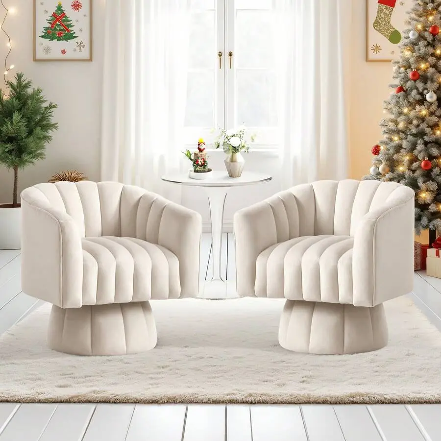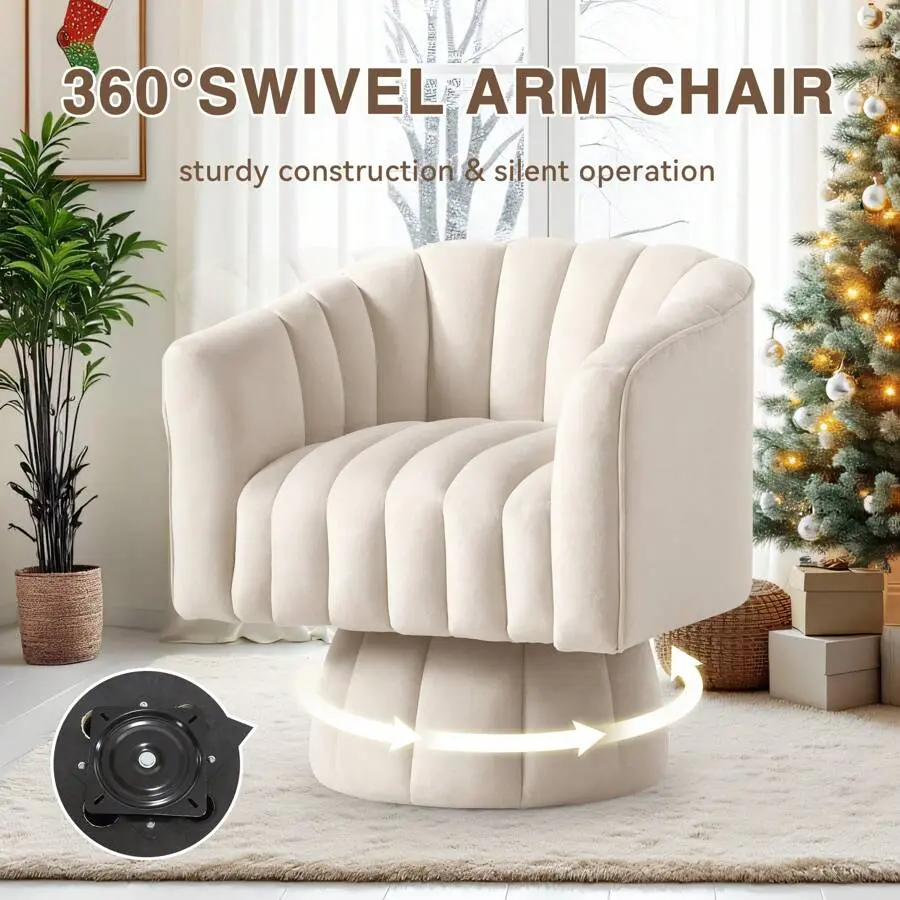 [Premium Materials]The swivel accent chair is made of premium velvet fabric, adding elegance and sophistication to your space.The velvet fabric is not only beautiful but is also extremely soft and durable, ensuring long-lasting comfort and visual appeal.Our swivel chair is carefully designed with modern ergonomics in mind.The wraparound backrest provides excellent support, while the highly resilient sponge provides exceptional comfort, making it a perfect place to relax after a long day.