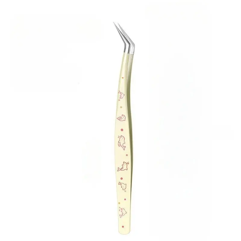 Professional Eyelash Tweezers, High Precision Gold Feather Dolphin Clip, Specialized for Lash Extension and Handmade Crafting