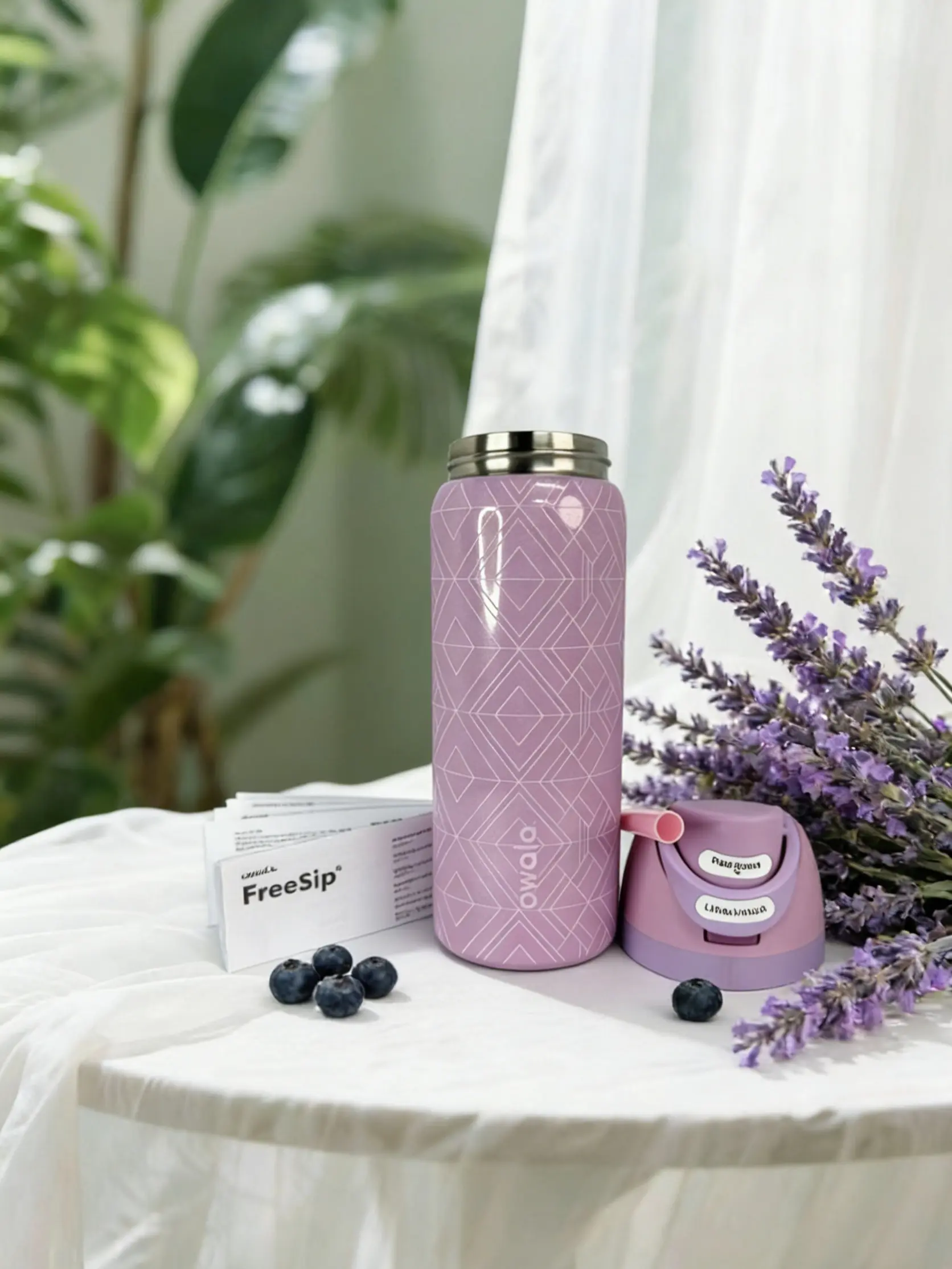 ✨ The Owala 32oz Insulated Water Bottle features a Sparkle Purple Geometric Print. Its double-walled stainless steel construction ensures durability and style. Perfect for hikers, campers, and commuters, this bottle is a versatile drinkware flask. The leak-proof sip lid and sweat-proof design make it a practical choice for on-the-go use.