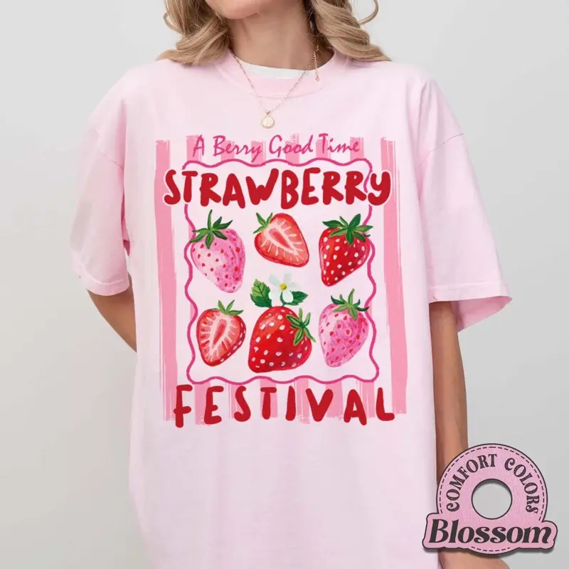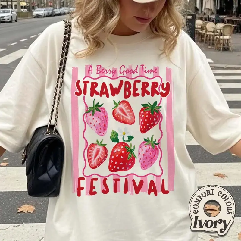 Vintage-Inspired Strawberry Festival Graphic Tee, Cottagecore Aesthetic, Soft Comfort Colors Shirt for Summer Berry Lovers, Cozy Casual Outfit, Perfect Gift for Fruit & Nature Fans