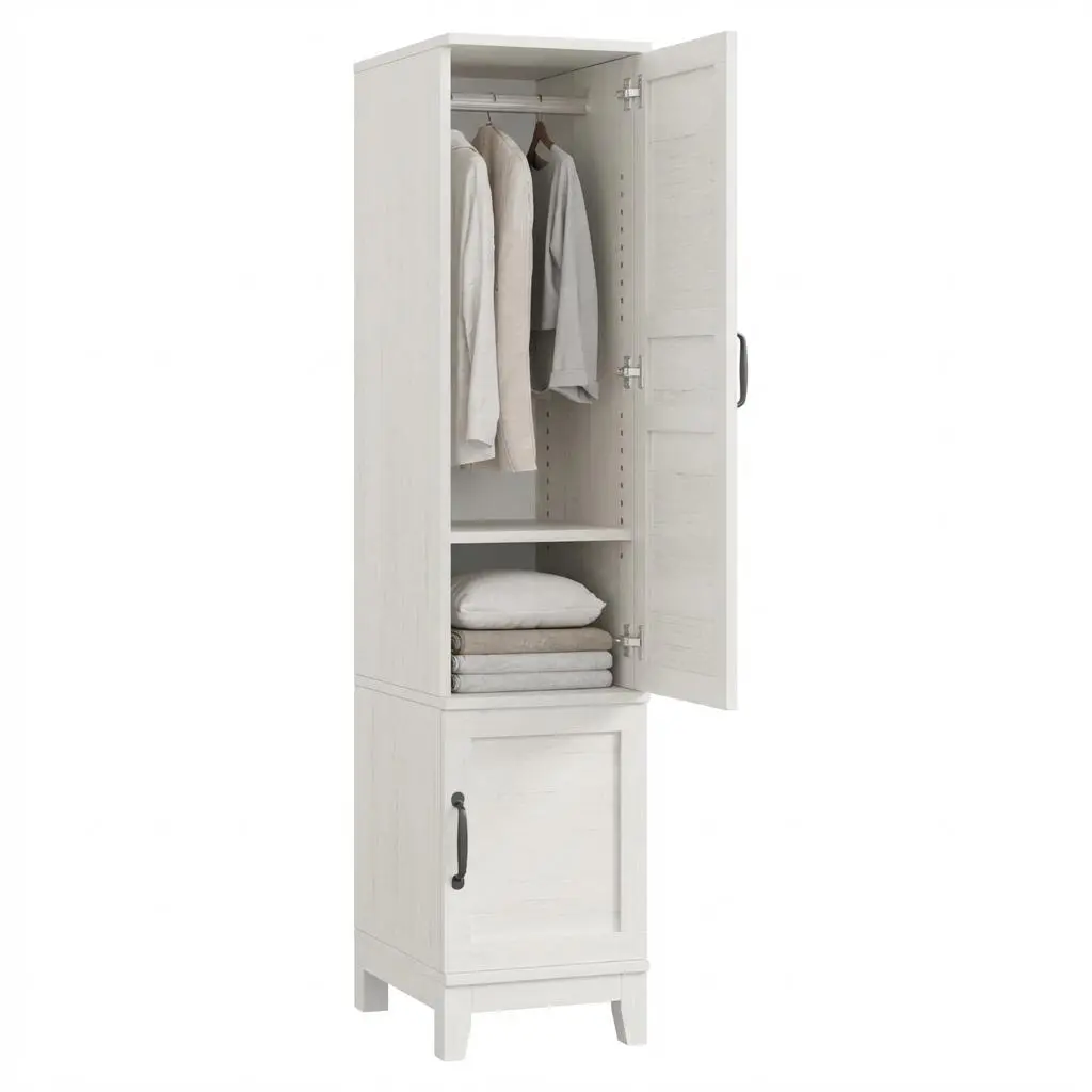 ·Strong & Stable Construction: Crafted from heavy-duty MDF board with 4 strong legs, this narrow tall wardrobe armoire cabinet provides superior stability. The included anti-tip safety brackets support prevent wobbling, ensuring years of safe and reliable storage. Caution: This product includes anti-tip accessories that must be used to secure it to the wall during use.
