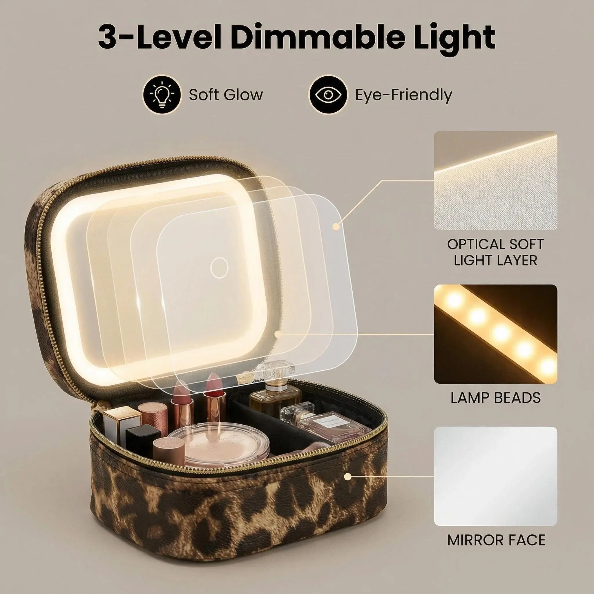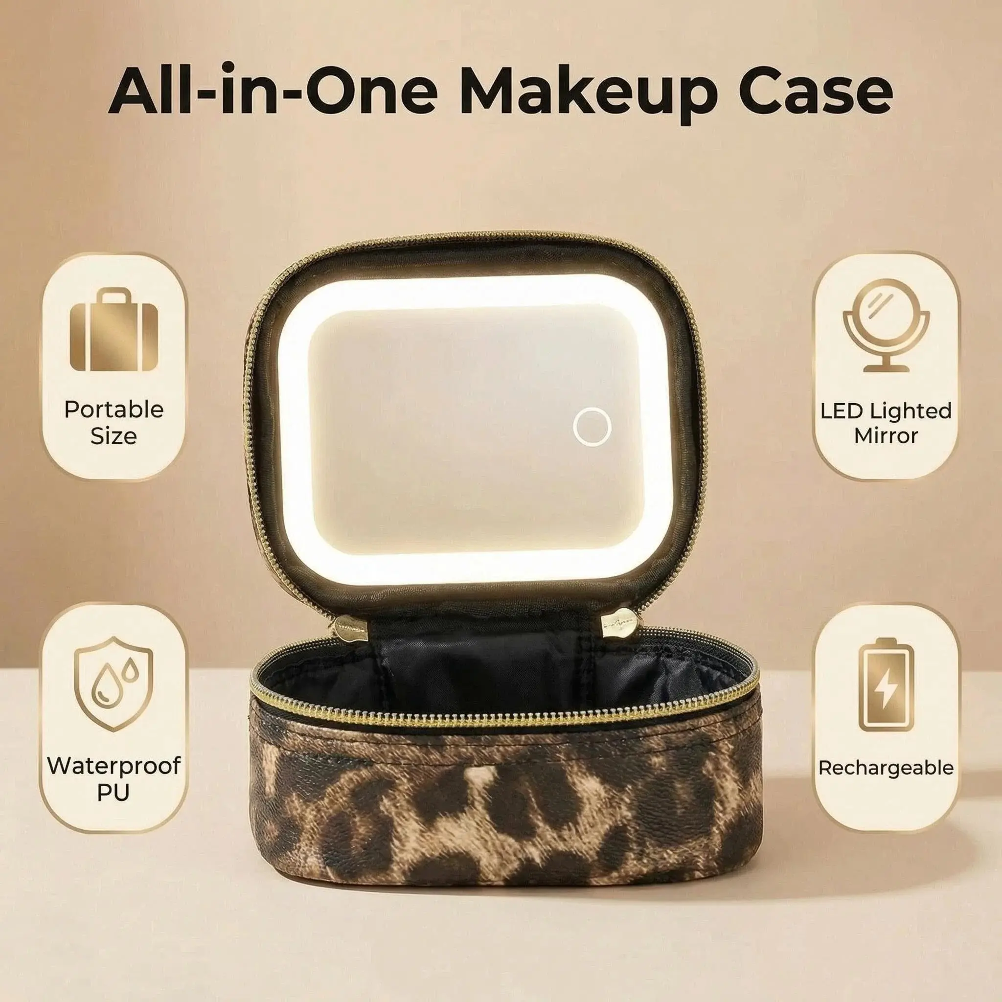 Upgrade your beauty routine anywhere with this Portable Makeup Bag with LED Light & Mirror. Designed for modern women on the go, this lighted cosmetic case combines makeup storage, mirror, and lighting in one smart travel organizer.