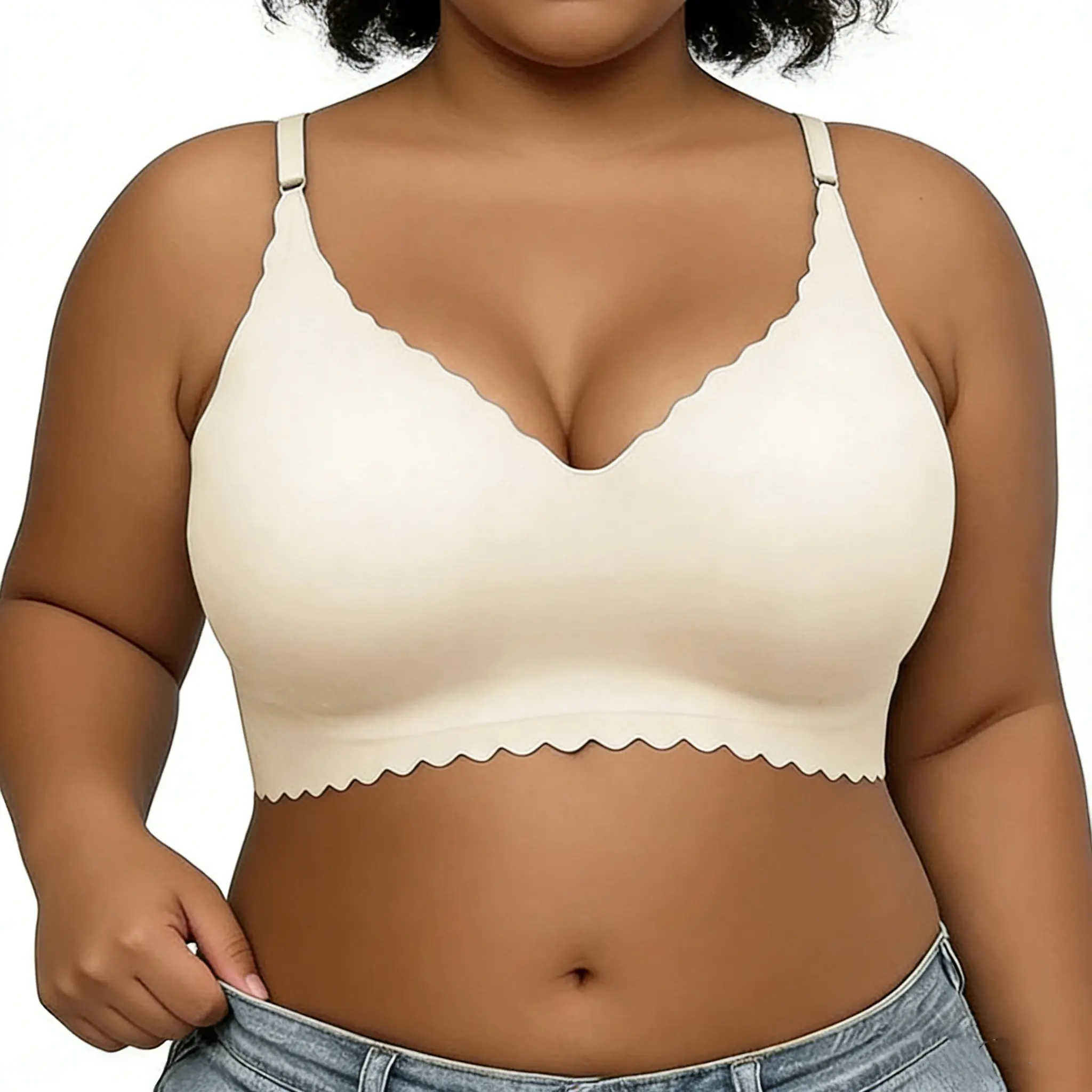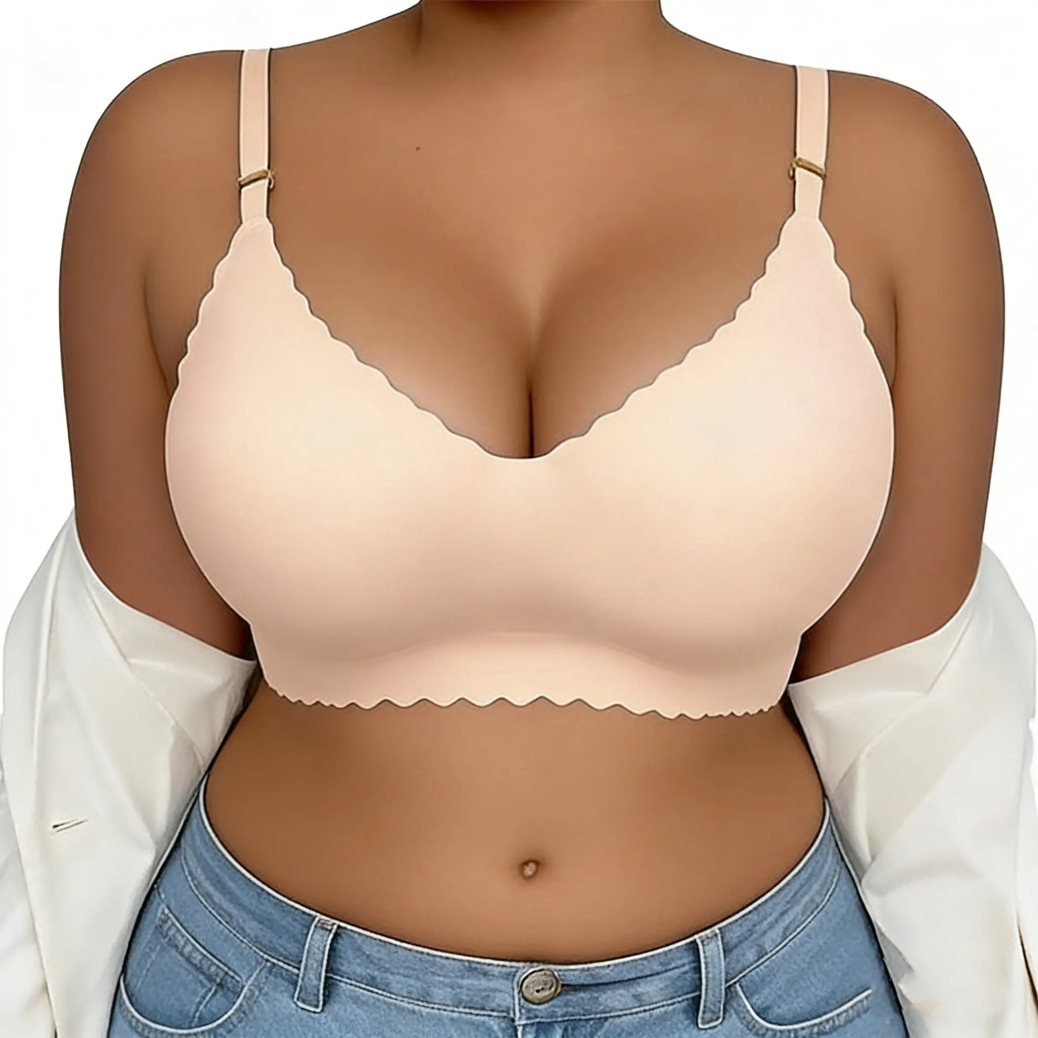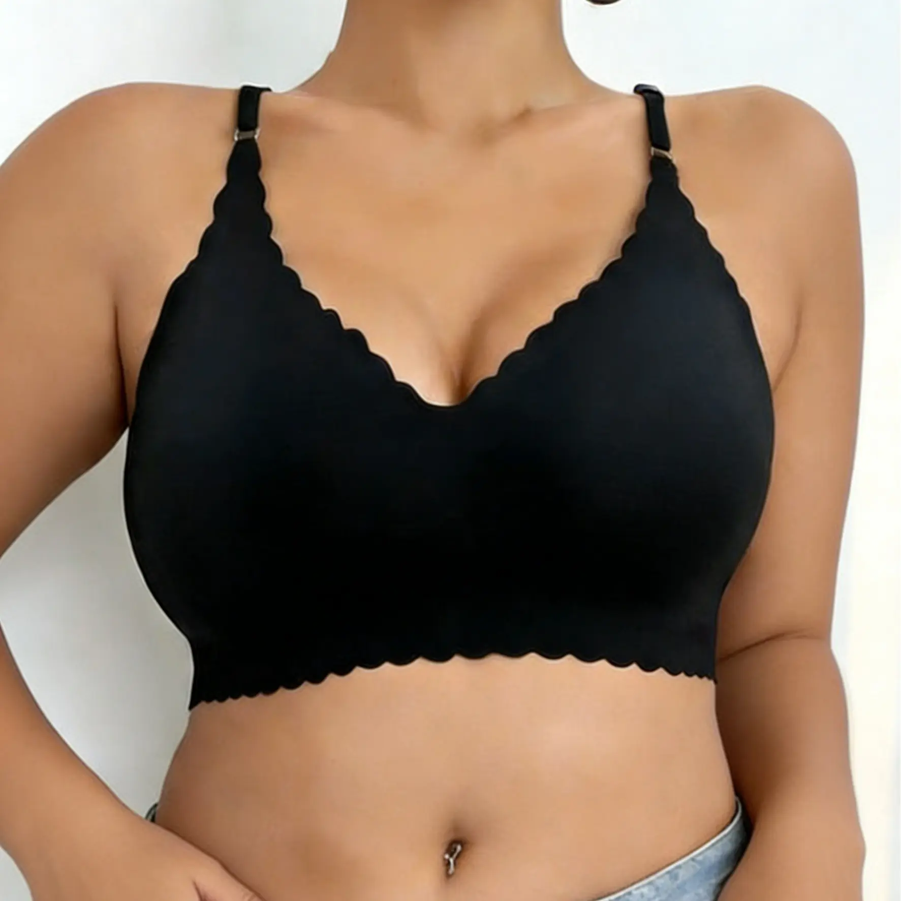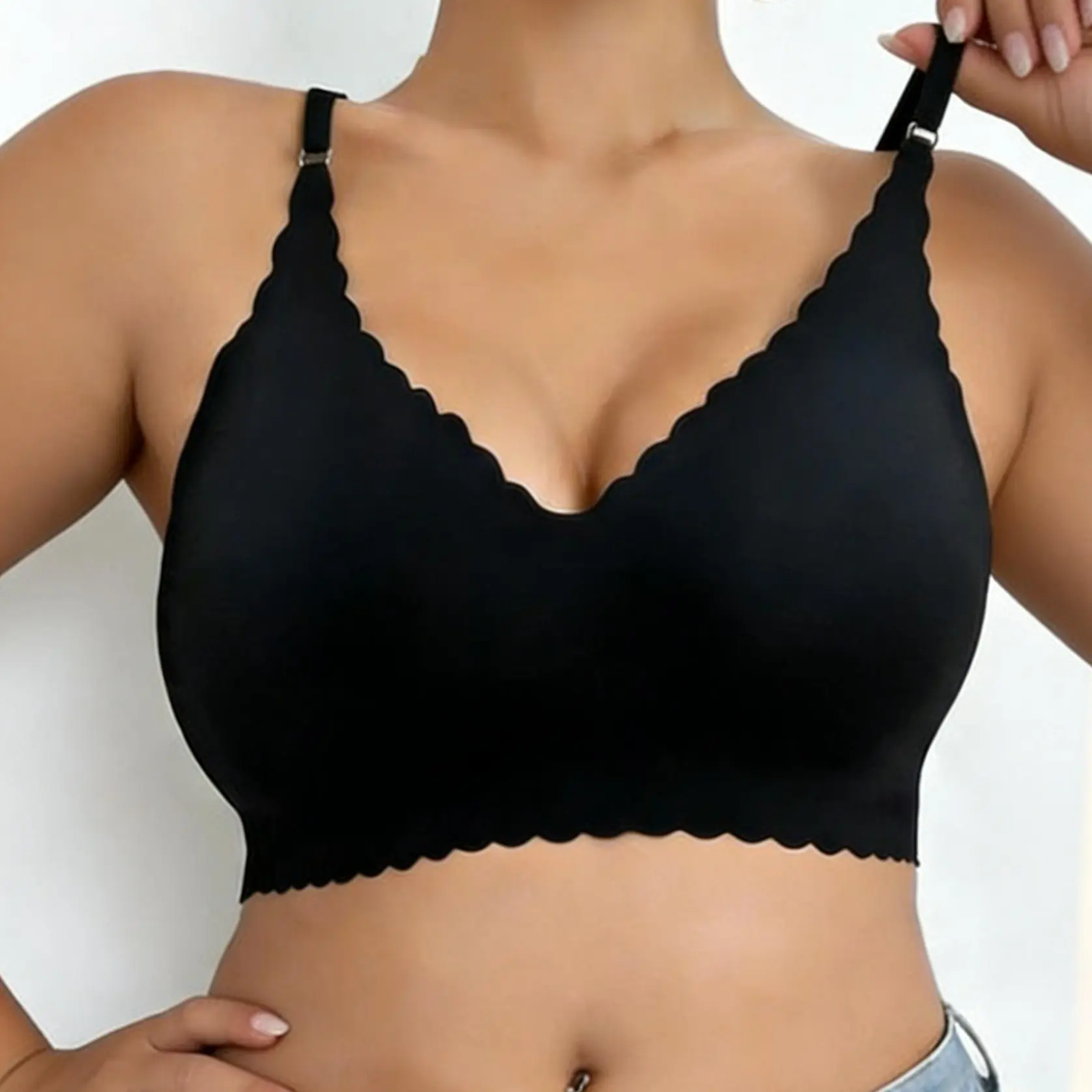 The bra is V-shaped, focusing on shaping. It is ideal for young women seeking a stylish, supportive bra. The fixed double shoulder straps add to its comfort. This versatile bra is suitable for all seasons, making it a staple in any wardrobe.