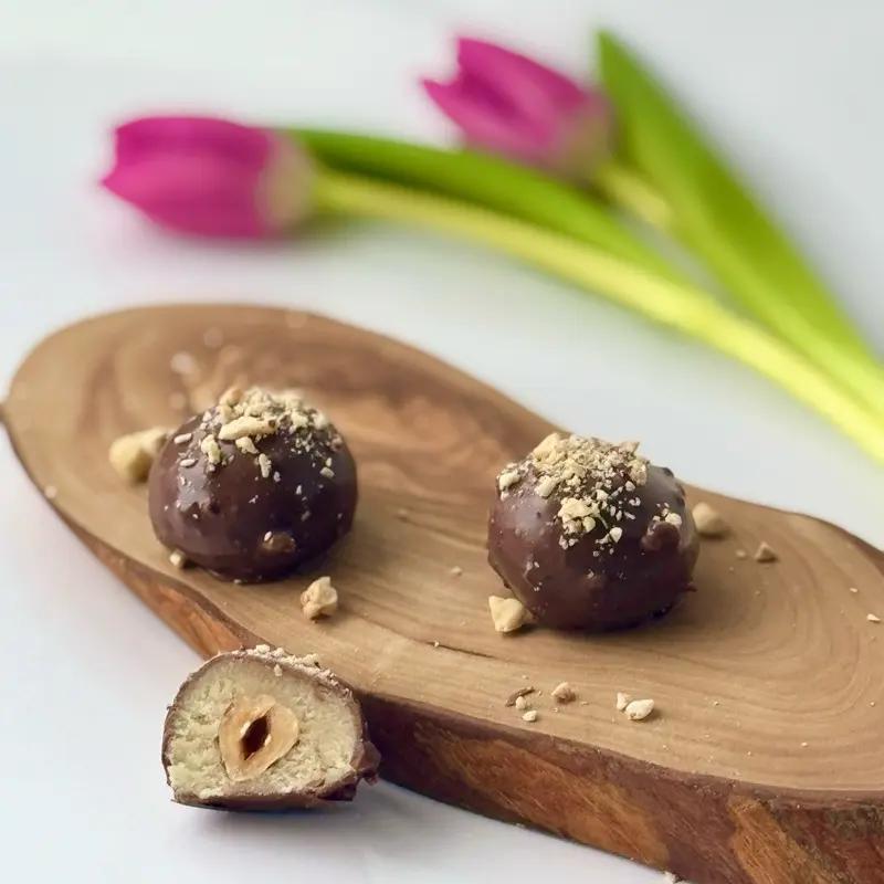 Indulge in our handcrafted milk chocolate–covered hazelnut marzipan, made for true dessert lovers. Each piece combines creamy hazelnut marzipan with a smooth milk chocolate coating for the perfect balance of nutty and sweet.