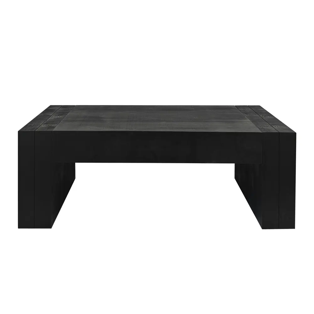Upgrade your living space with this sleek black manufactured wood coffee table, designed for both modern and farmhouse-style interiors. Featuring a bold black finish, sturdy construction, and a spacious surface, this table is perfect for displaying decor, holding beverages, or everyday use.