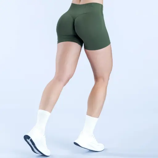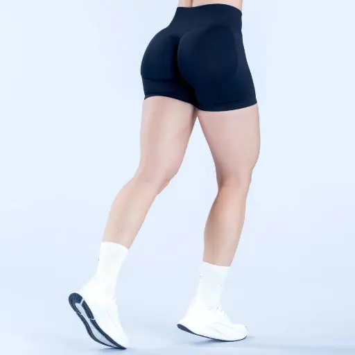 Seamless one-piece construction, high-stretch wear-resistant fabric, low-rise ribbed waistband, natural butt-lifting lines, women’s fitness training shorts