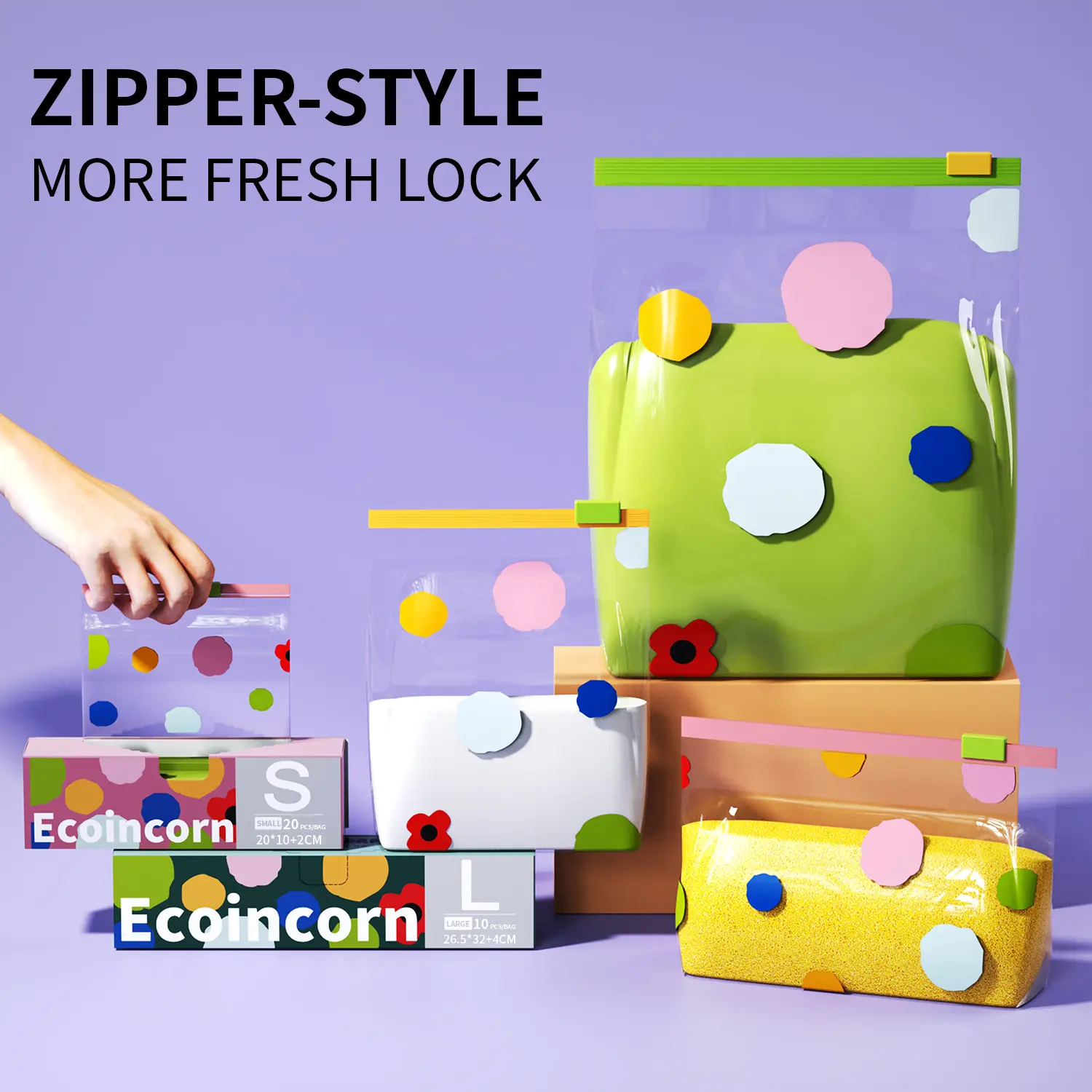 20pcs/Box S/M/L Sizes Freezer Sealable Storage Bags, Refrigerator Portion Bags, Food Packaging, Reusable, Food Cabinet Odor-proof Bags, Sa Dressing Sealed Fresh Bags, Thickened Household Self-sealing Zipper Bags