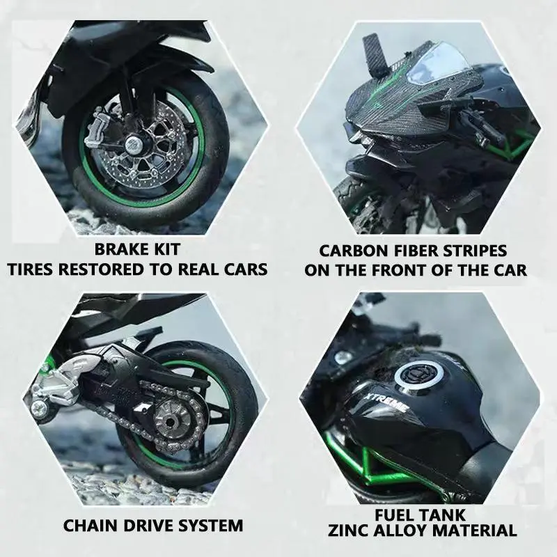 1:18 Ninja hx816 H2R Diecast Motorcycle Model Workable Shork-Absorber Toy For Children Gifts Toy Decoration