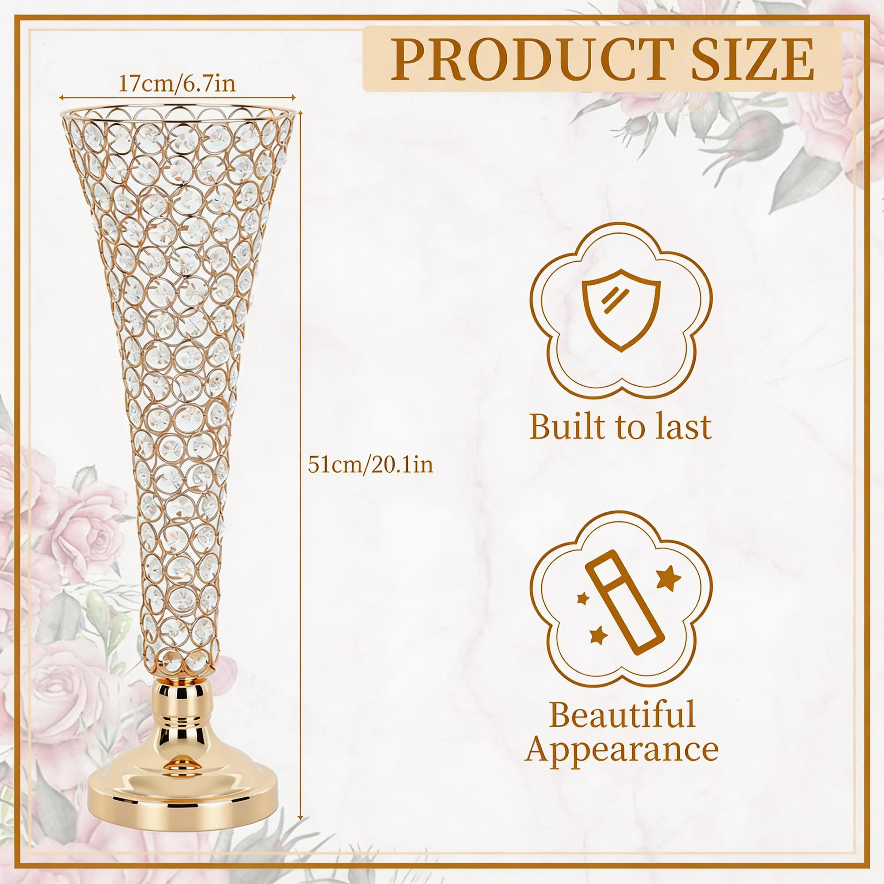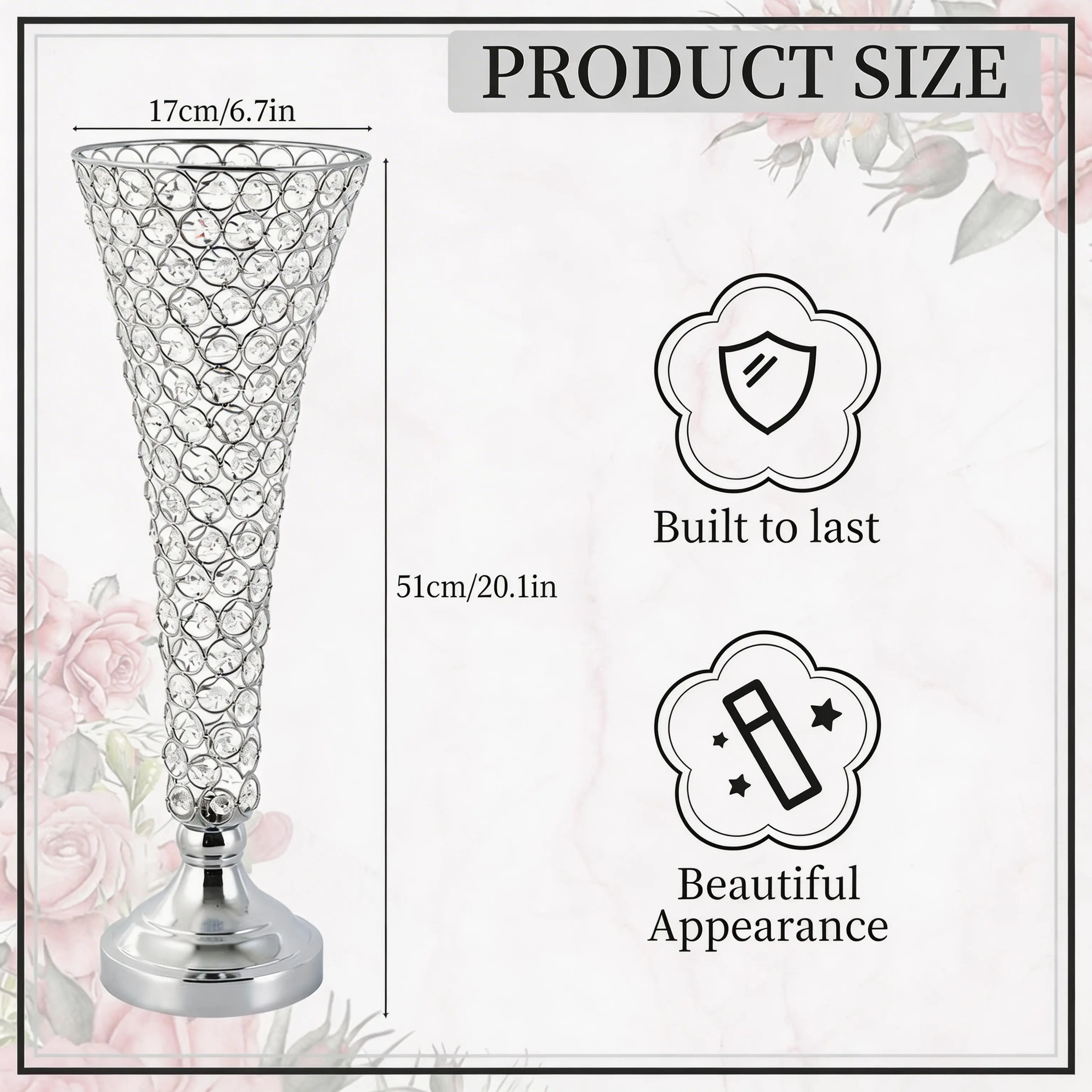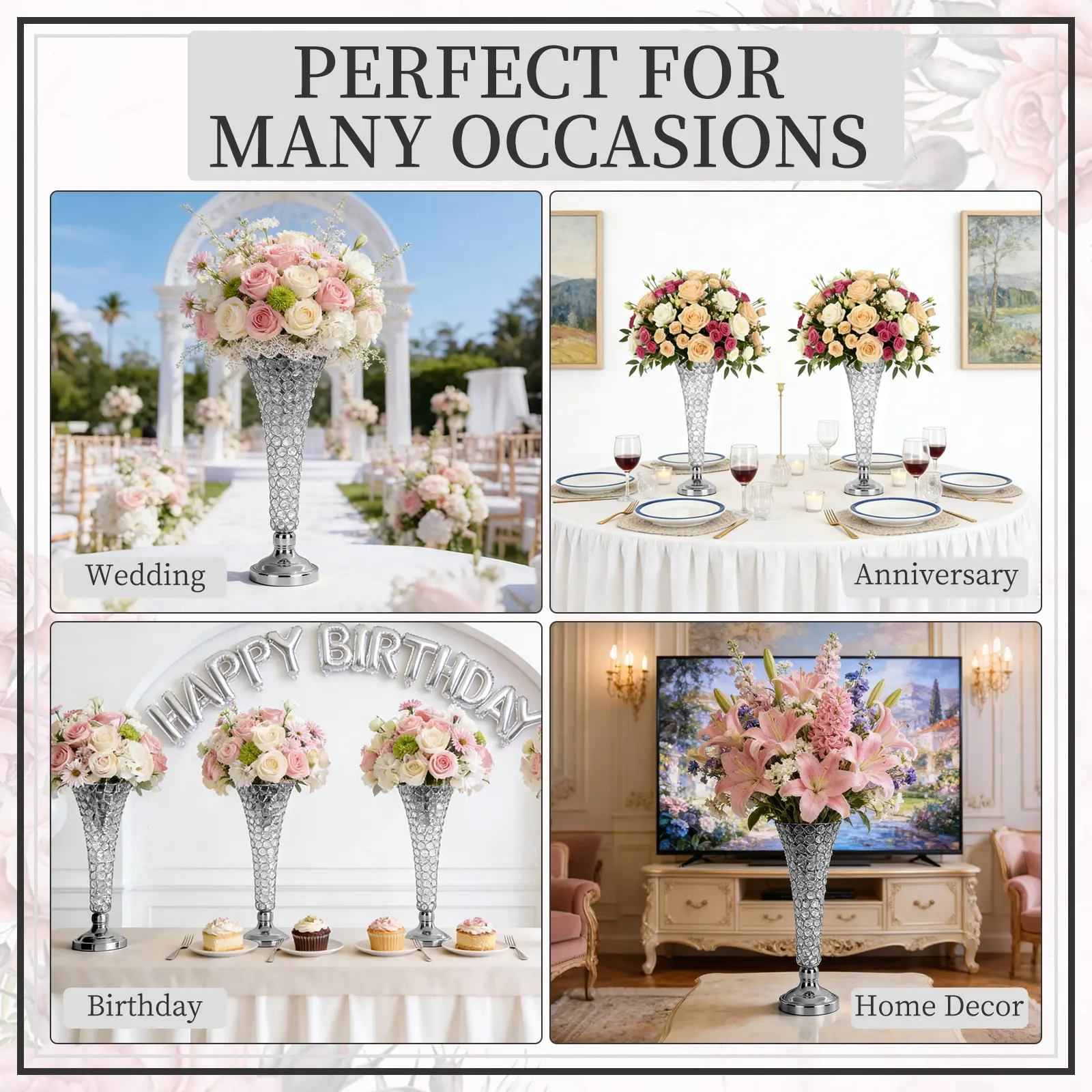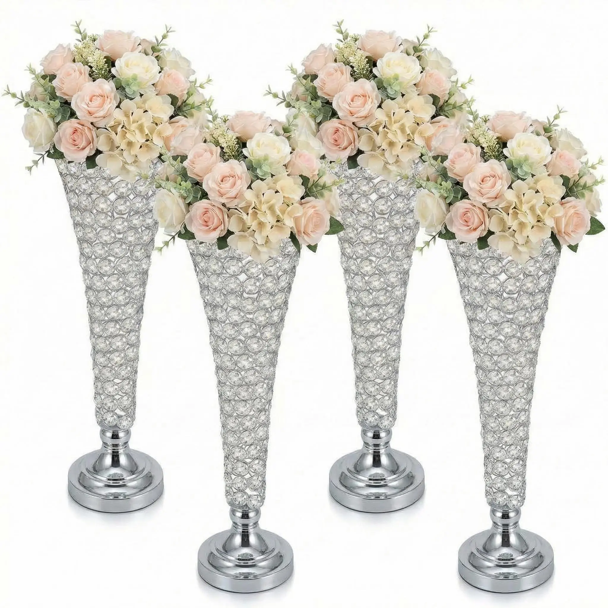 Upgrade your event instantly with this bulk set of 4 crystal trumpet vases. Perfectly designed for weddings, banquets, and galas, these stands add a touch of luxury to any table. (Note: Flowers not included).
