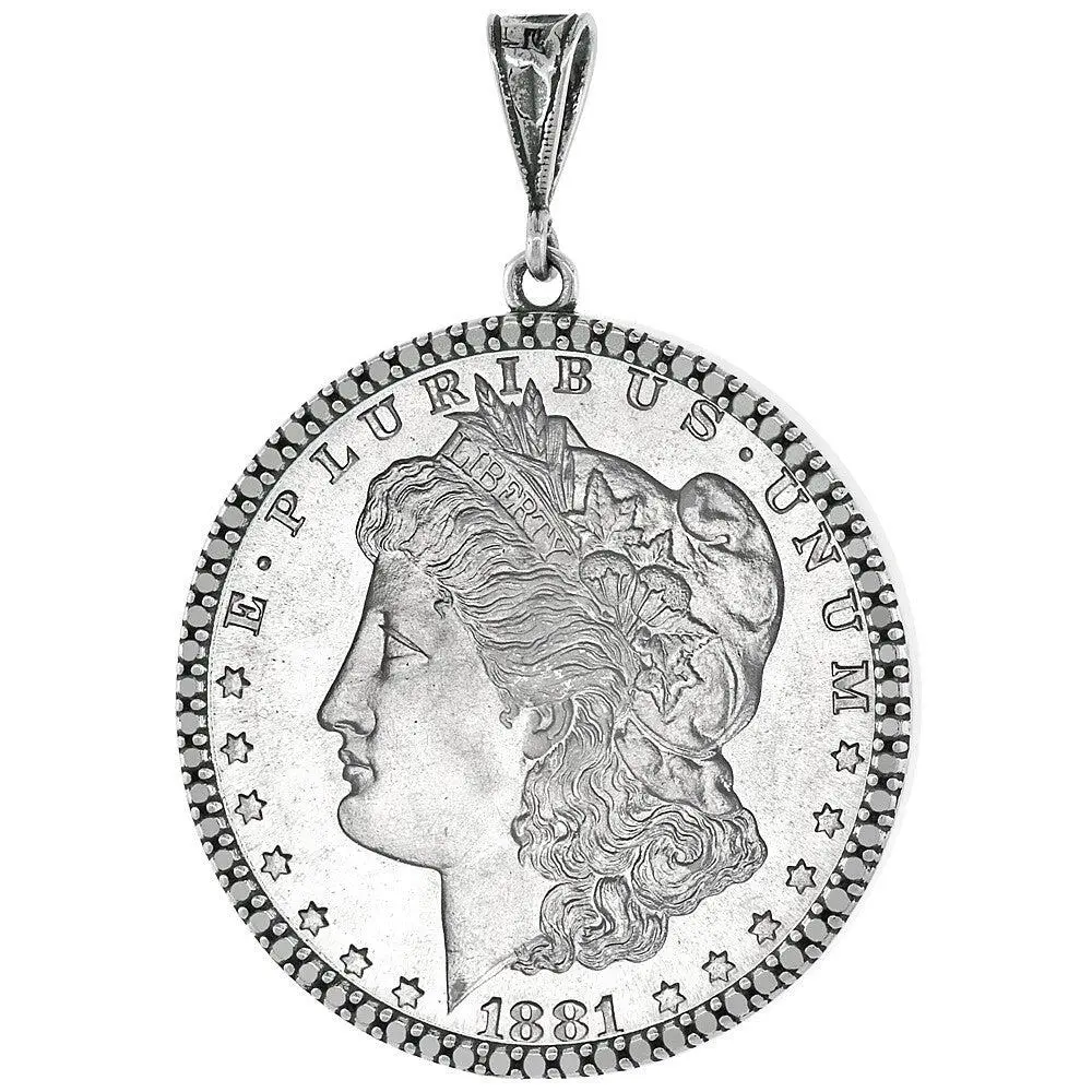 This Sterling Silver Pendant is made in the United States in Excellent Quality. It fits Mexican Olympic 1 Dollar Coins and 38mm Coins. It includes a very simple light and unobtrusive Bezel that has a Squared Edge and a thin Illusion Diamond Rim to show the whole coin with an added attraction. The coin can be removed and replaced safely and at any time, but repeated openings and closings will damage the prongs.