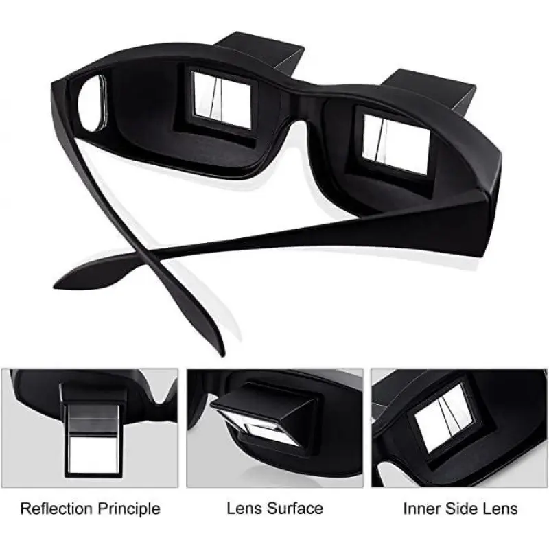 Lazy Glasses are made from high-definition glasses and high-quality reflecting prisms. They provide a clear and bright image, enabling you to see objects in front of you while in a supine position. The small, light polycarbonate material ensures smooth and comfortable wear.