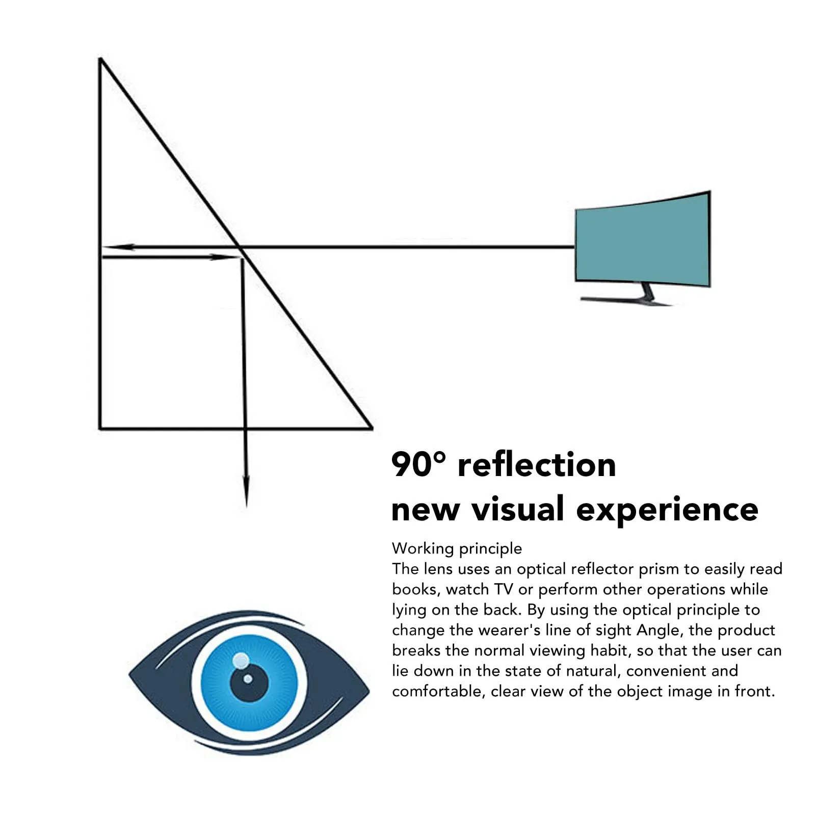 Using optical principles and reflective prisms, these glasses help you read and watch TV comfortably while lying down. They reduce cervical and spinal pressure from long-term sitting. The prisms reflect a clear image, enhancing your viewing experience. Perfect for relaxing at home or traveling.