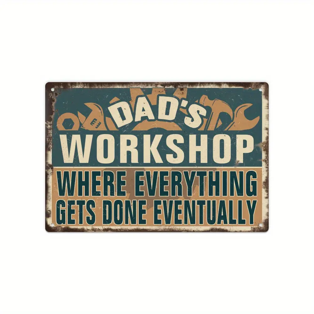 Dad's Workshop Metal Tin Sign - Vintage Garage Wall Art Suitable for Home, for Man Cave, Tool Room - Father's Day Gift, 7.9x11.8 Inches ( Metal Retro Tool Shed Decorations)