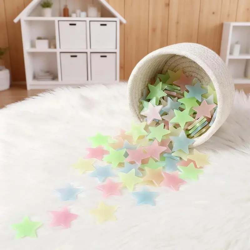 Glow Stars for Ceiling & Bedroom – 2pcs 1.18 Inch Fluorescent Wall Stickers, Create a Luminous Night Sky, Random Assorted Colors
