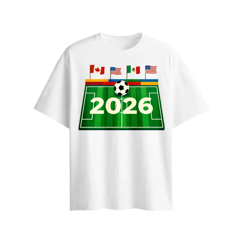100% Cotton North America Soccer 2026 Graphic T-Shirt, Unisex USA Mexico Canada Flag Football Tee, Casual Sports Top for Men & Women