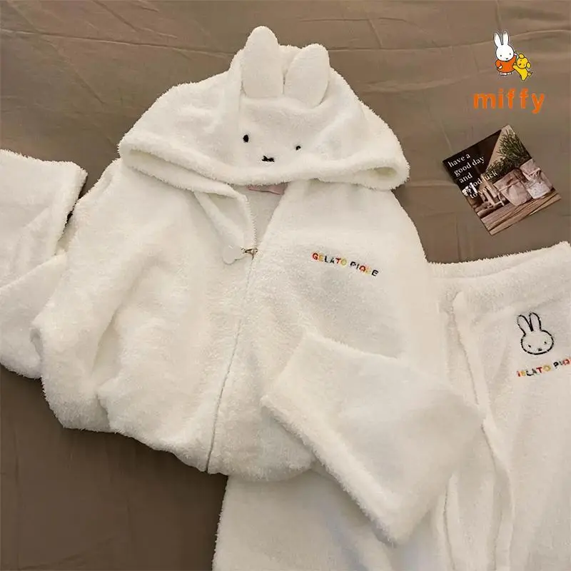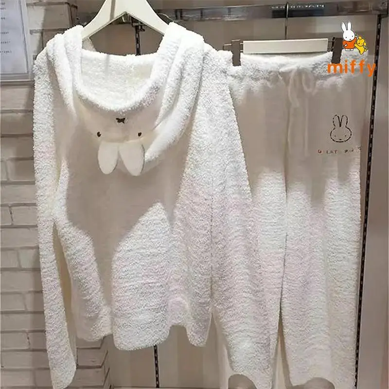 Kawaii Miffy Pajamas Creative Fashion Hooded Loungewear Comfortable Dopamine Home Wear Set Anime Accessories Girls Perfect Gifts