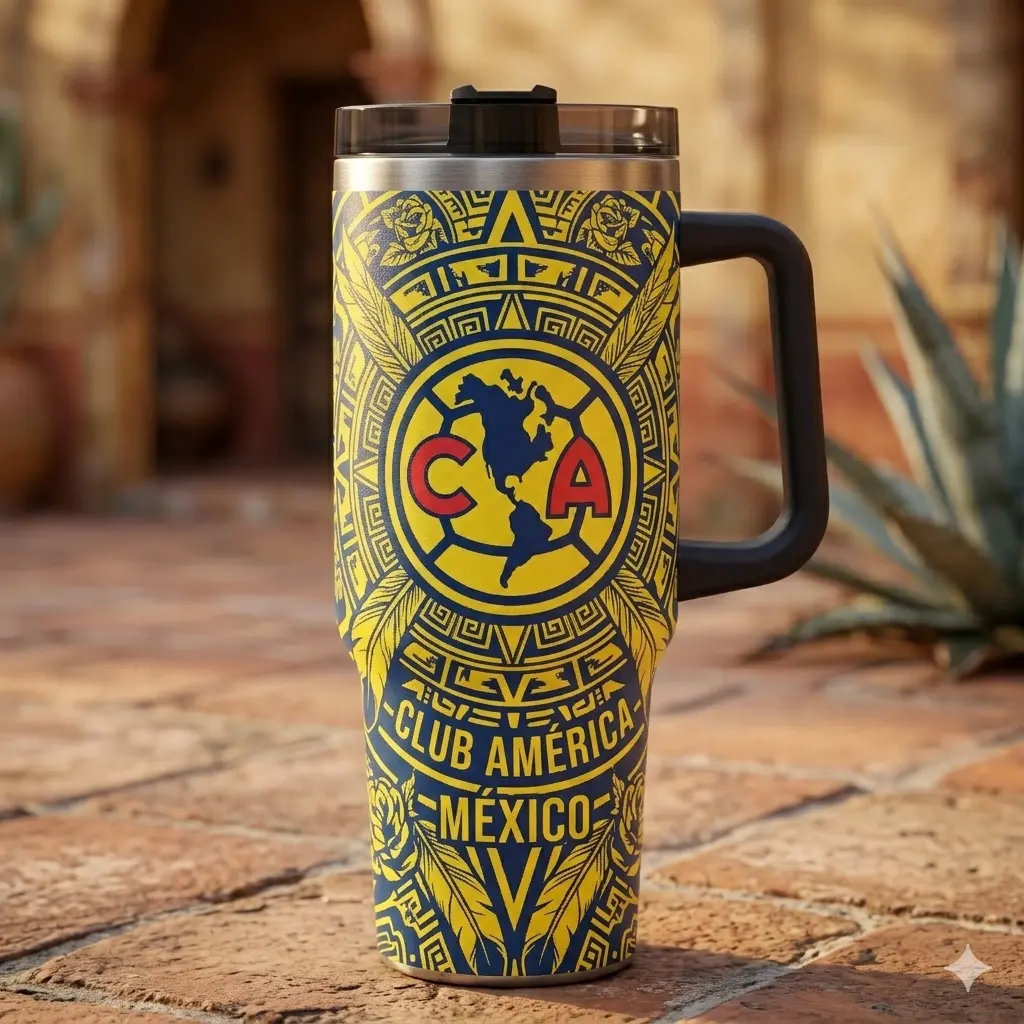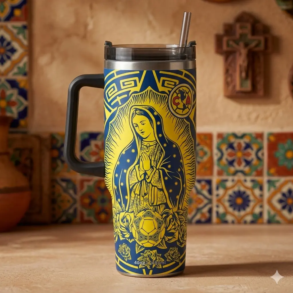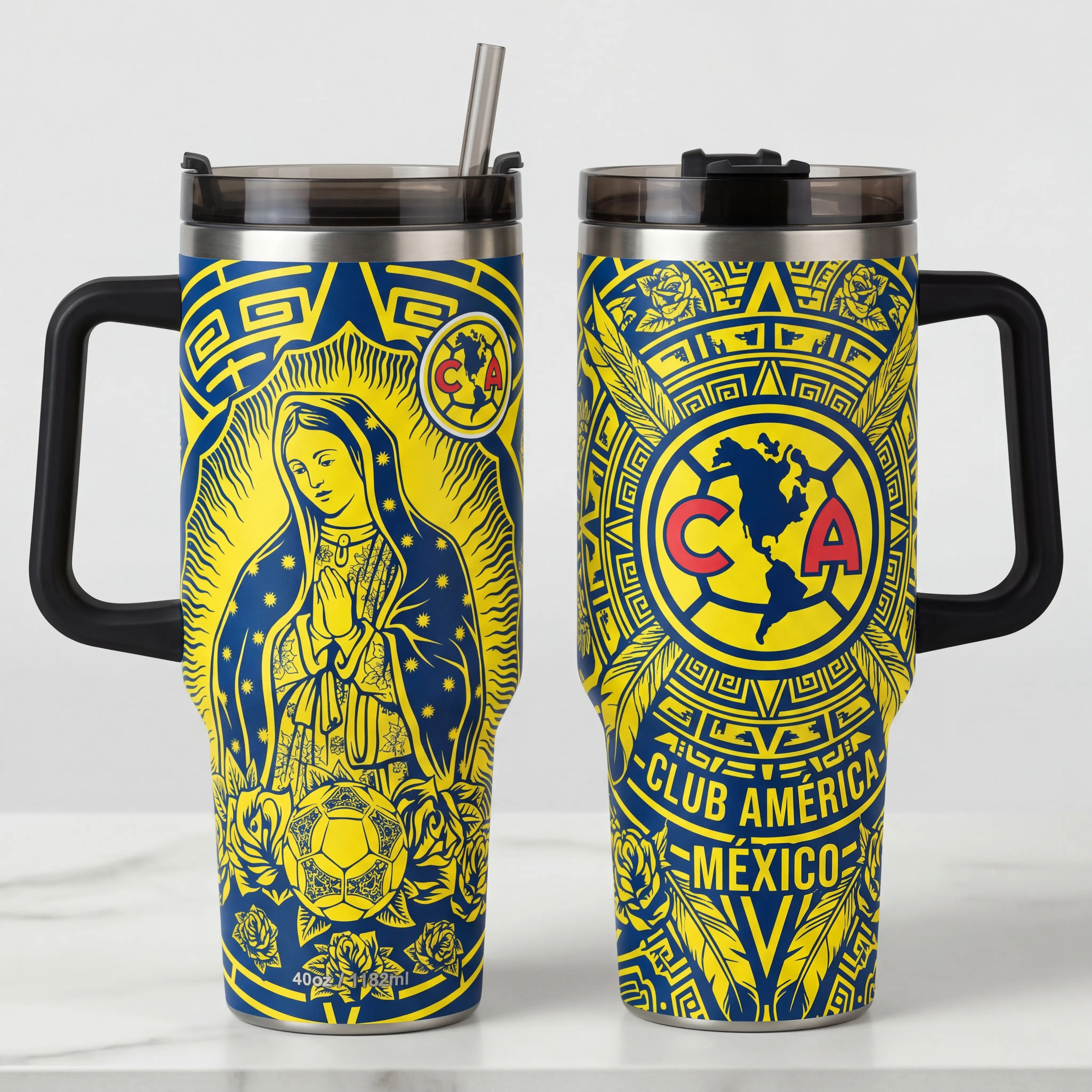 Club América Mexico Inspired Tumbler 20oz 40oz With Handle, Virgen Style Graphic Travel Tumbler, Soccer Fan Drinkware Gift, Large Capacity Cup