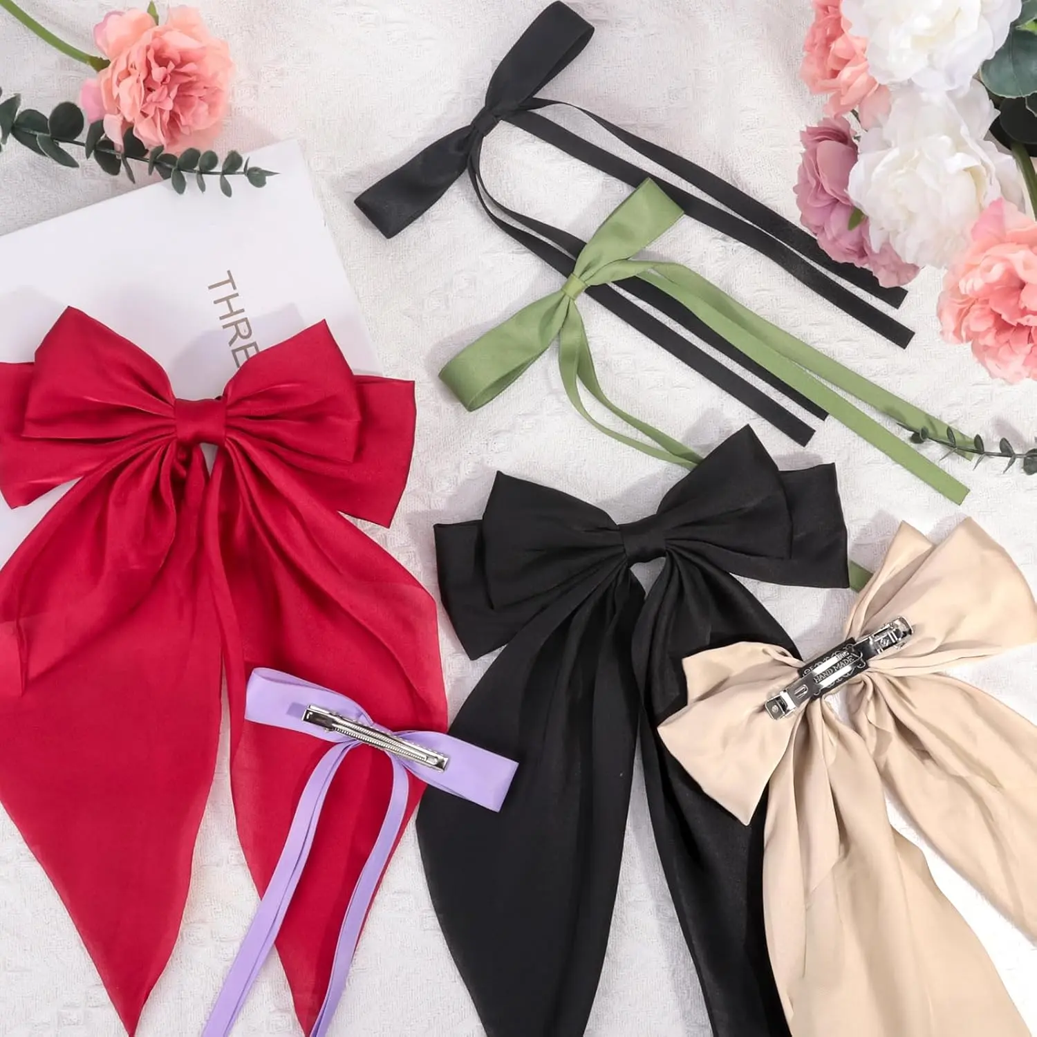 12 Pcs Hair Bows for Women Girls Bow Hair Clips Long Tail Hair Ribbon, 6 Pcs Large Hair Bow & 6 Pcs Small Cute Hair Barrettes Aesthetic Hair Accessories Ponytail Holder Slides Metal Clips