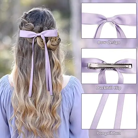 6 pcs big hair bow ad 6 pcs small hair bow clips coming in all, satin material and metal clamps of hair bows can be weard for a long time.
