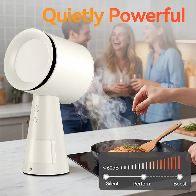 ·Compact & Portable Design for Small Spaces: This portable kitchen smoke exhaust fan boasts a space-saving size, fitting perfectly in studio apartments, small kitchens, countertop, and even RVs or camping setups. As a lightweight portable hood range, it's easy to move and can be stored in cabinets when not in use, making it ideal for limited spaces where traditional range hoods won't fit