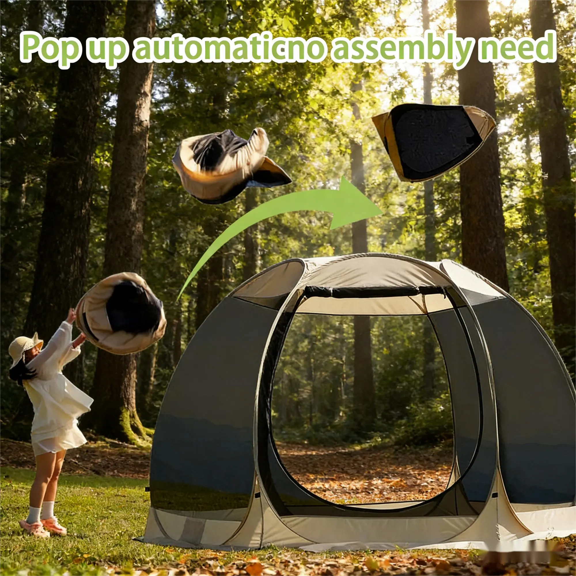 PAKICETUS multi-functional outdoor tent is your ideal companion for camping, backyard gatherings and garden leisure. Designed for 6-8 people, it features an instant pop-up structure that enables quick setup without complex assembly, saving your time and energy. Equipped with 2-in-1 design, it combines a high-density multi-layer mosquito net shelter and weatherproof sun shade, effectively blocking bugs while providing reliable UV protection and wind resistance. The spacious interior offers a comfortable and breathable space for family and friends to relax. Lightweight and portable, it comes with a compact storage bag for easy transport, making it perfect for all your outdoor adventures.