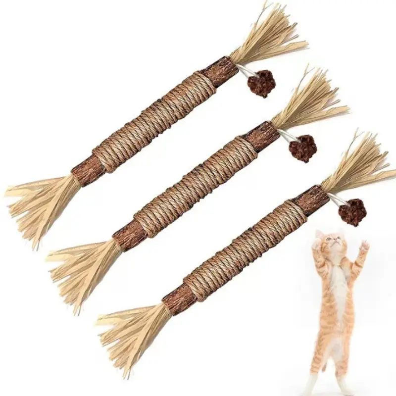 Pet Toy Cat Chew Stick, Hemp Rope Wood Mint Catnip Teeth Cleaning, Indoor Play Oral Stimulation, Ideal for Cats and Adult Cats