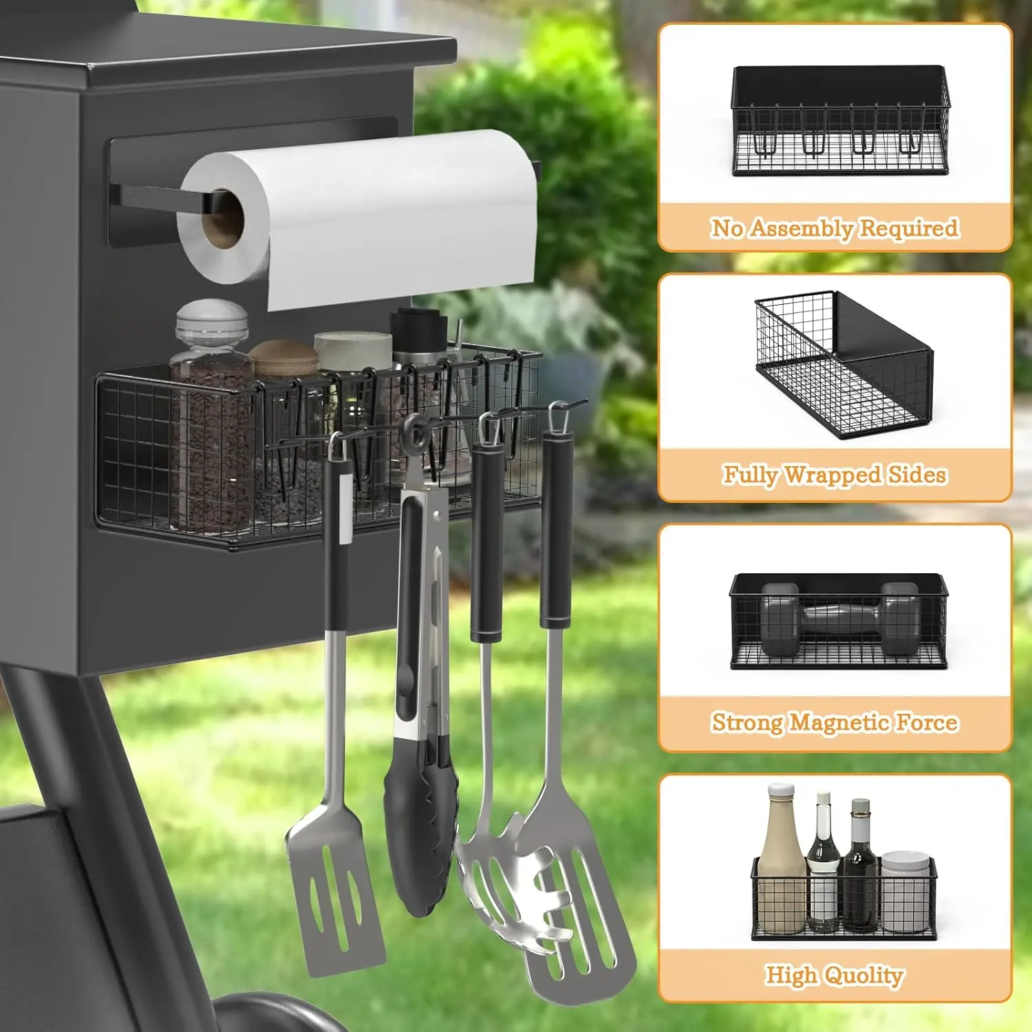 Simply attach the bin to your grill using the magnetic feature. Store your grilling tools and keep your paper towels handy. This accessory enhances your grilling experience by providing organized storage and easy access to essentials.