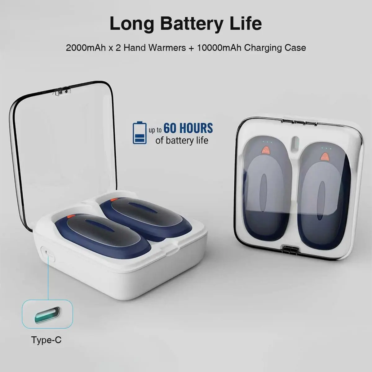 [Long-Lasting Rechargeable Power]: Equipped with a 2000mAh rechargeable battery and a 10,000mAh charging case, this hand warmer provides hours of steady warmth. The Type-C fast charging ensures quick power-ups, so you’ll never have to worry about cold hands while on the go.
