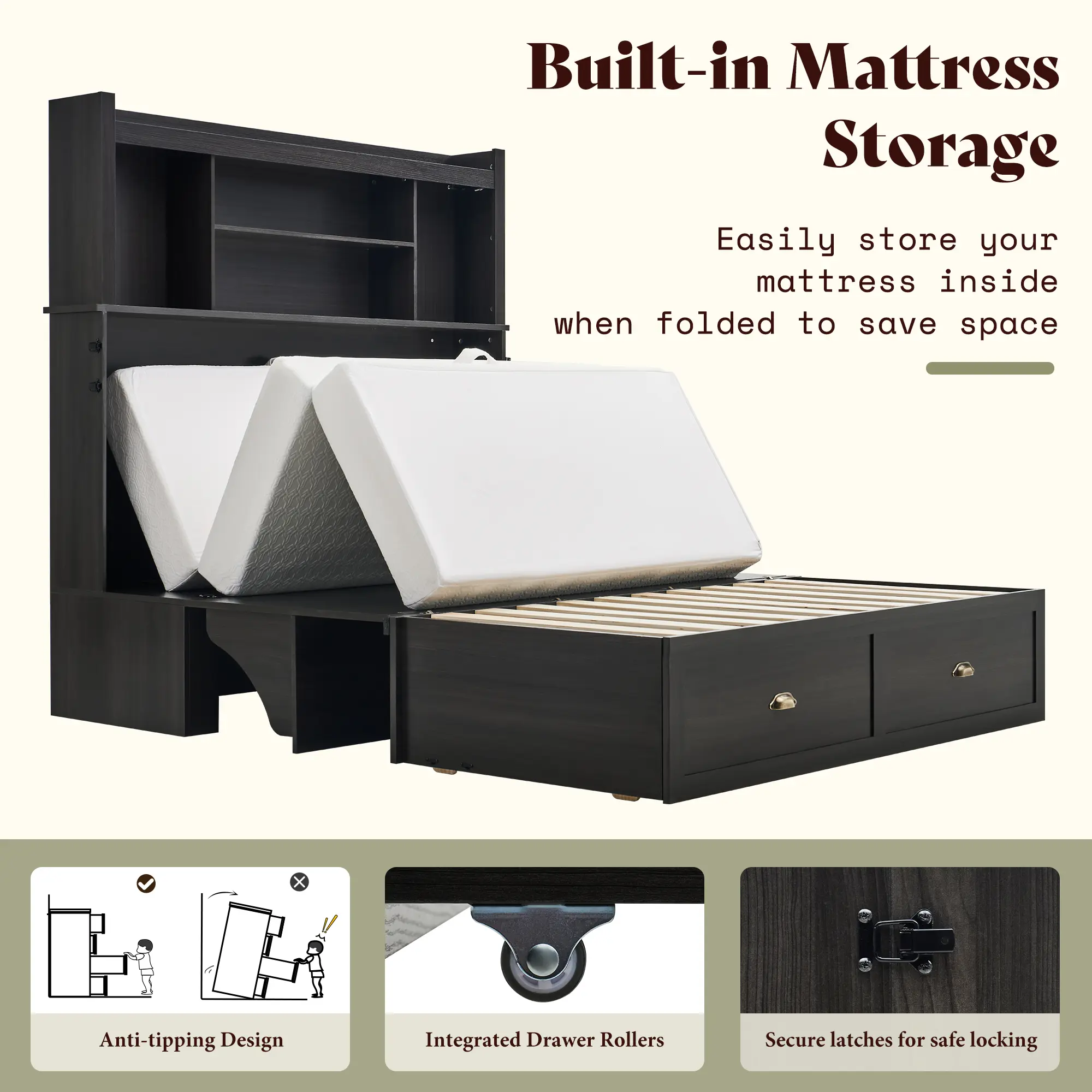 ·【3-in-1 Space-Saving Design】The murphy bed combines a cozy bed, functional desk, and organized storage in one folding design to maximize space, easily transforms between work & rest—ideal for studios and small apartments