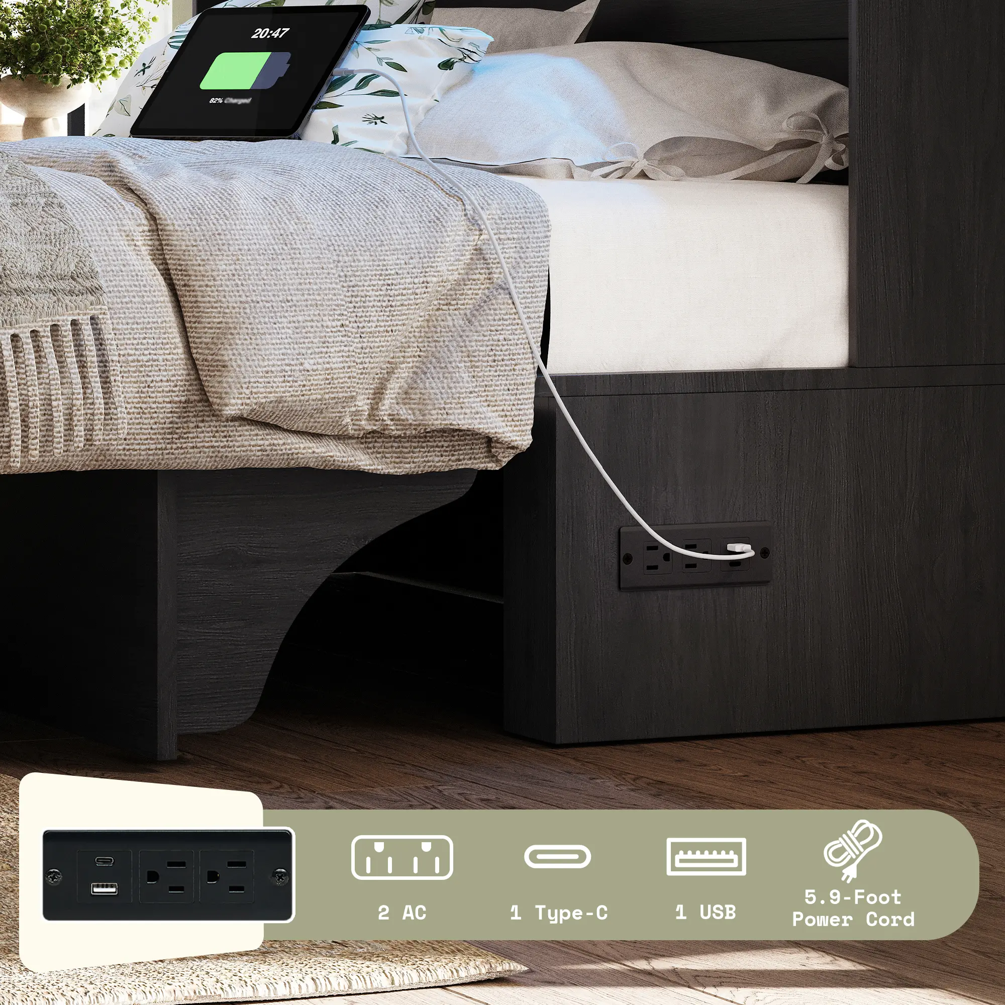 ·【Work Surface & Convenience】Spacious desktop adds workspace for study or work, holding laptops, books, and daily tasks. Built-in charging powers devices, while a large pull-out drawer keeps your space tidy and clutter-free