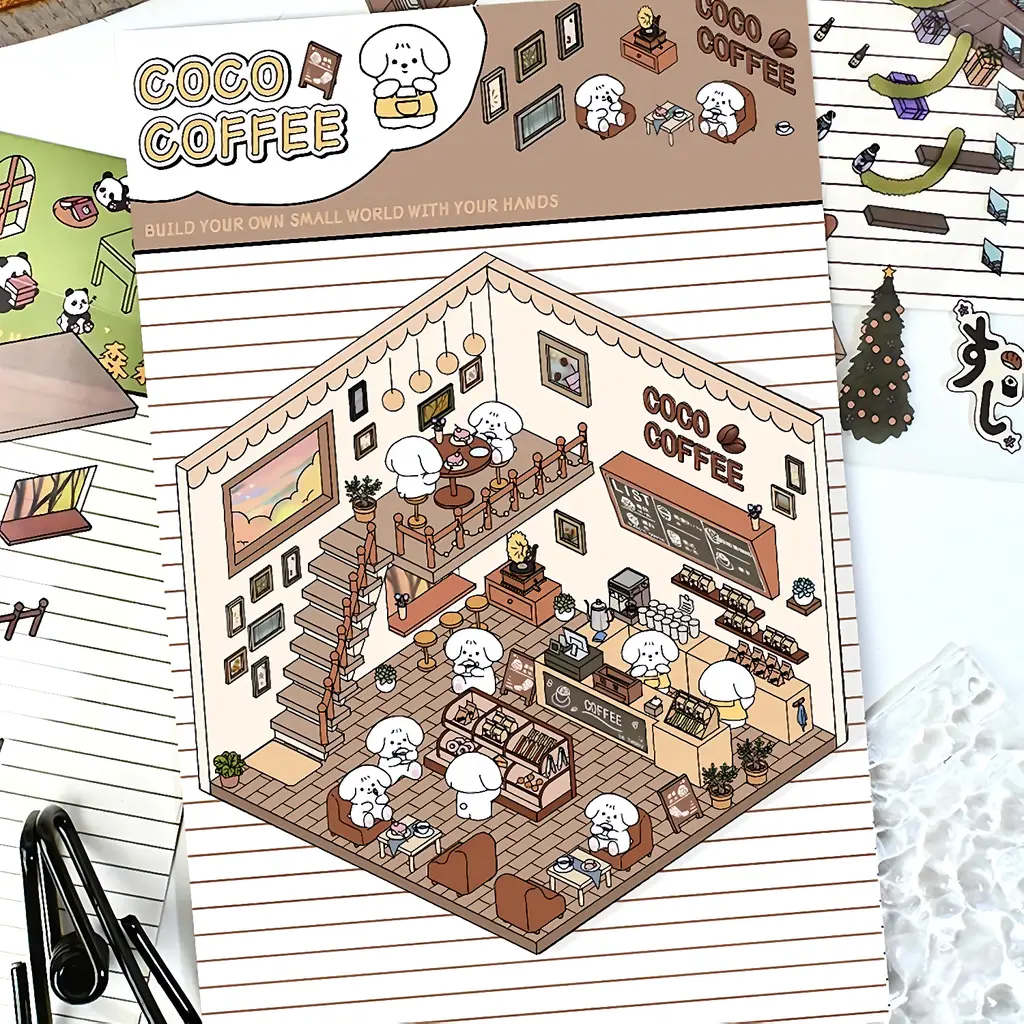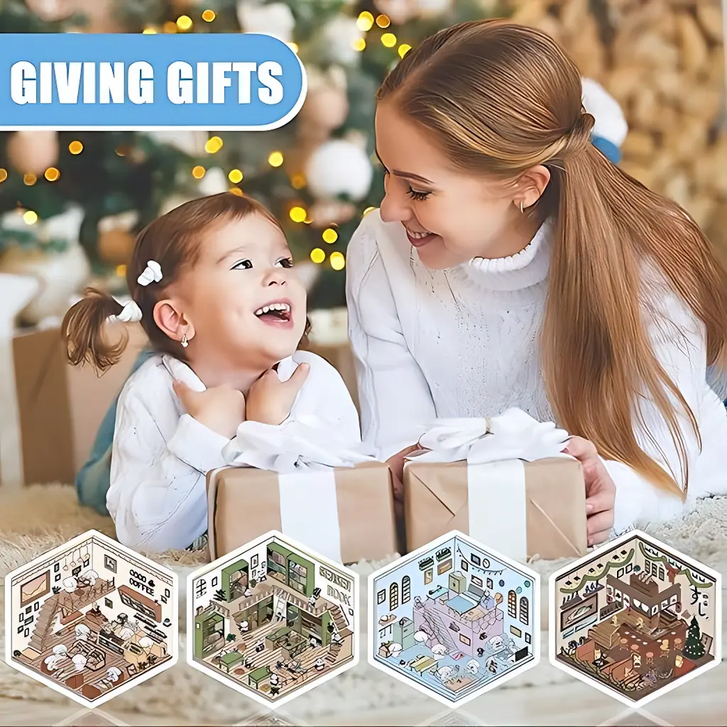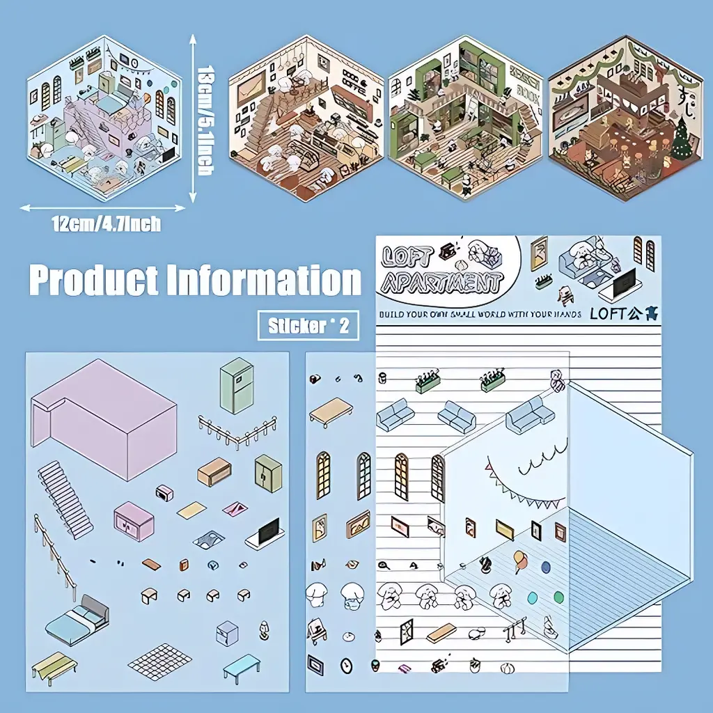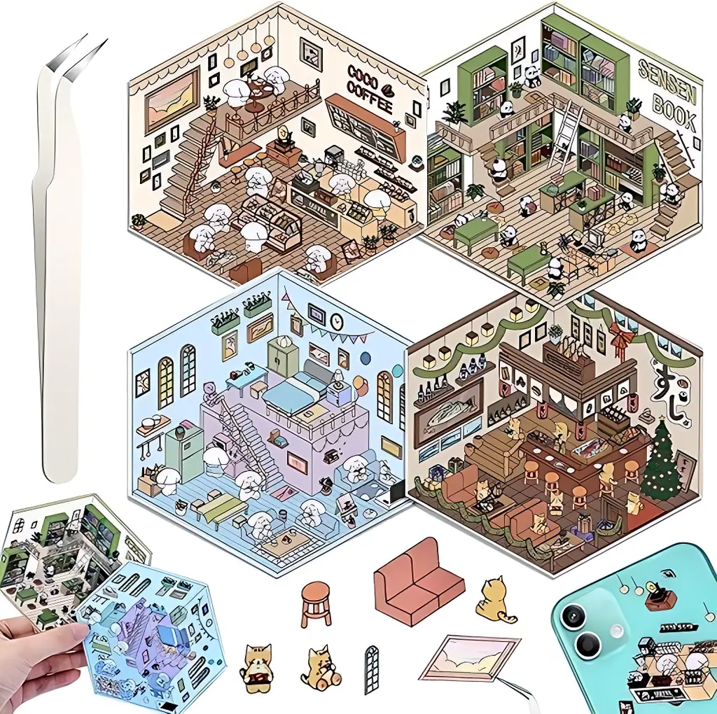 DIY 3D House Stickers, Sticker Book, Fun DIYStickers Scene Make Your Own Mini House CuteCartoon Animal Scene Sticker for Kids AdultSticker Art Relief Stress Pass The Time
