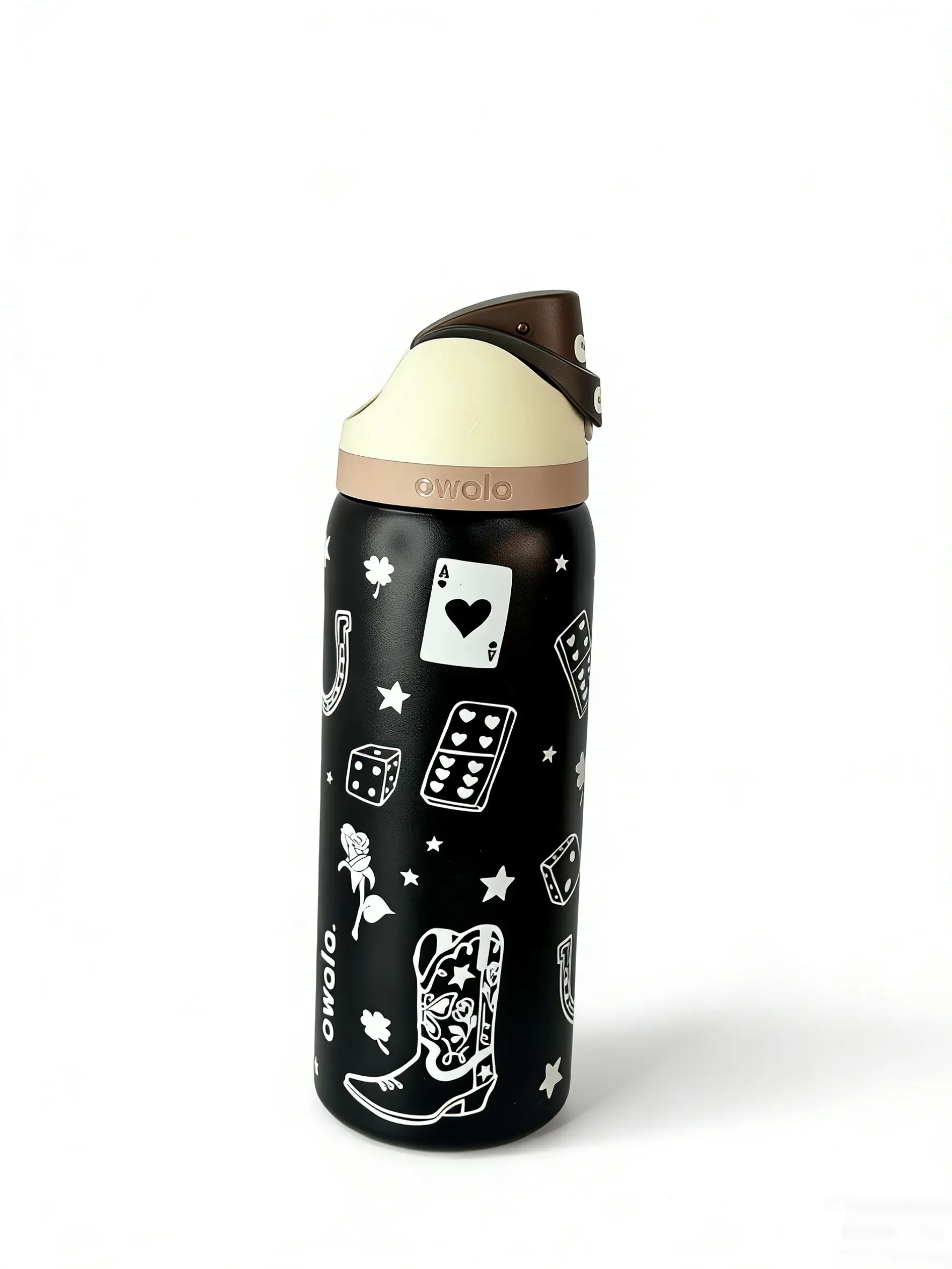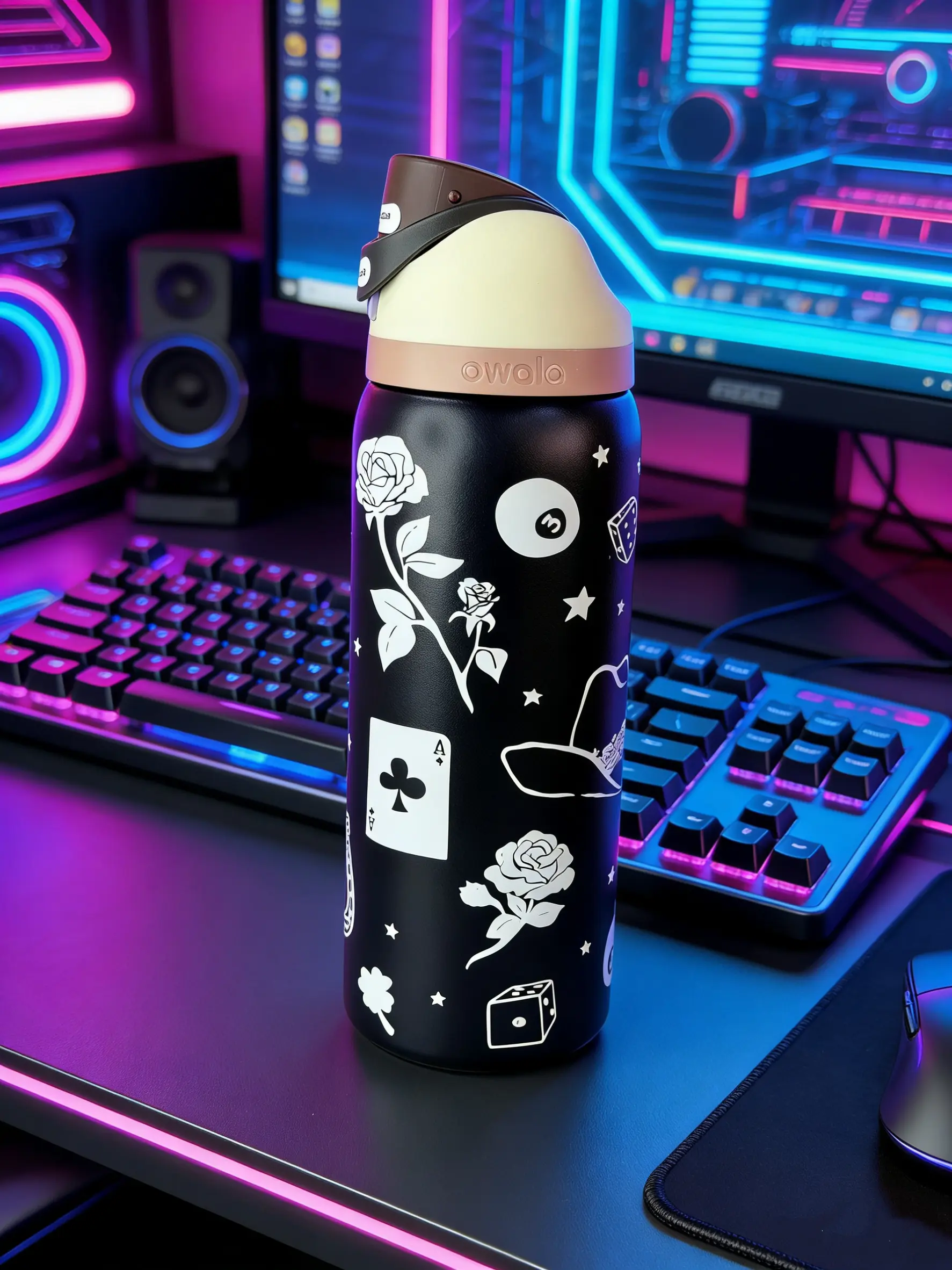 Discover the Owala FreeSip Insulated Stainless Steel Water Bottle, a 32oz limited edition. Perfect for dice & roses enthusiasts, this portable straw bottle is a reusable drinkware marvel. Ideal for on-the-go hydration, it combines style with functionality.