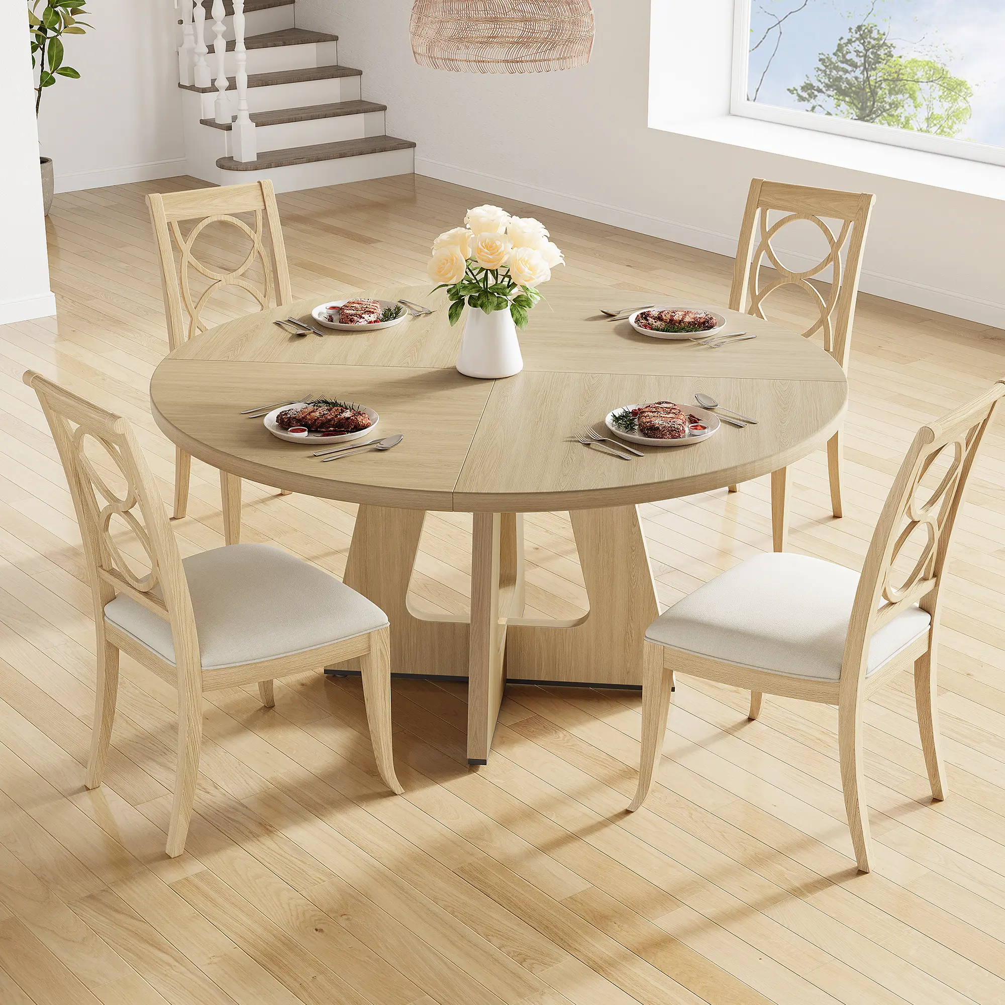 4.Whether you're hosting a family dinner, enjoying a casual meal, or entertaining guests, this circular dinner table is versatile enough to suit any occasion.