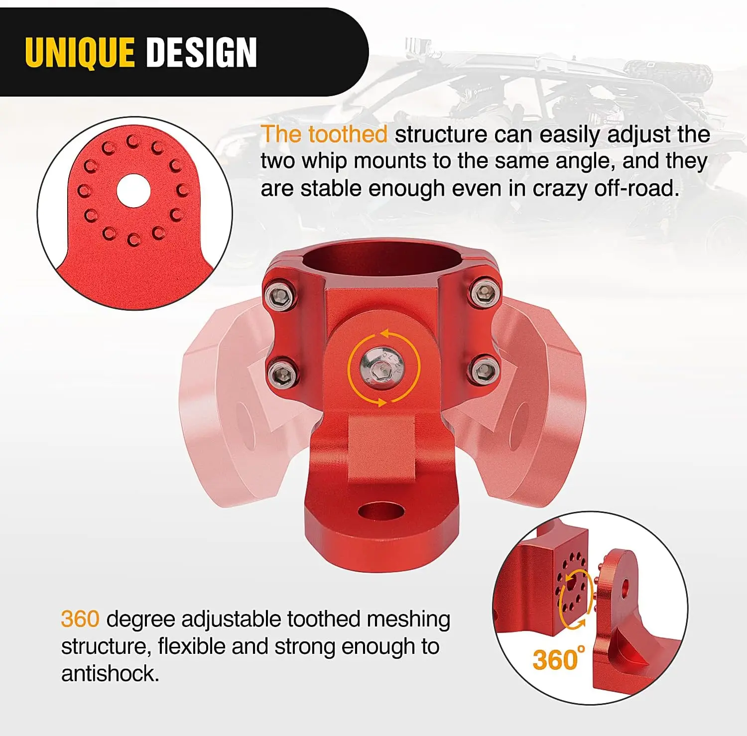 ·【Fit Size】Specially designed for flag antenna whip mounts on all UTVs with 1.5 to 1.75 inch and 1.75 to 2 inch Round Roll Cages, such as: Polaris RZR, Ranger, Can-Am Maverick X3, Commander, Yamaha, Kawasaki, Honda Talon Pioneer, ect