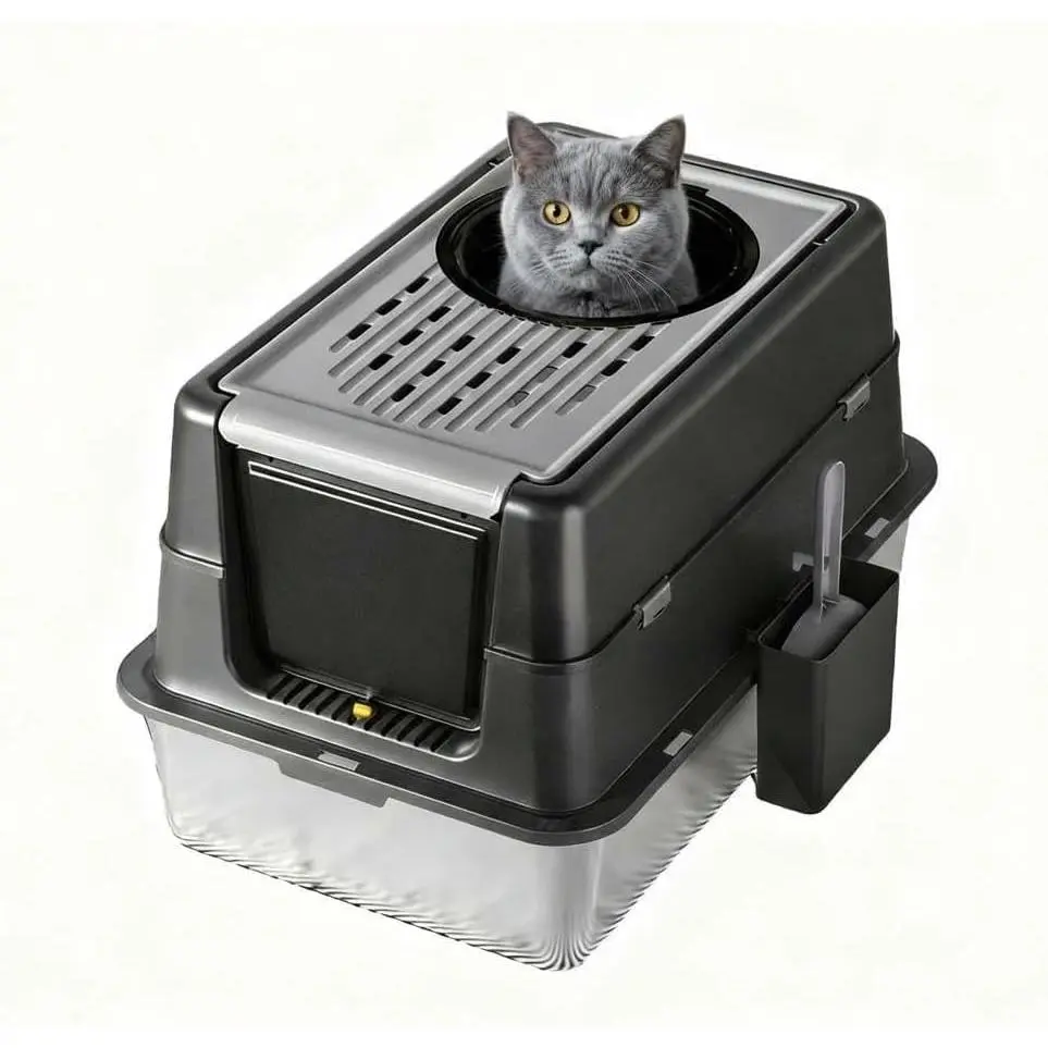 Features: 180° Flip-Top Lid, Dual Entry (Front Door + Top), Fully Enclosed, Odor Control