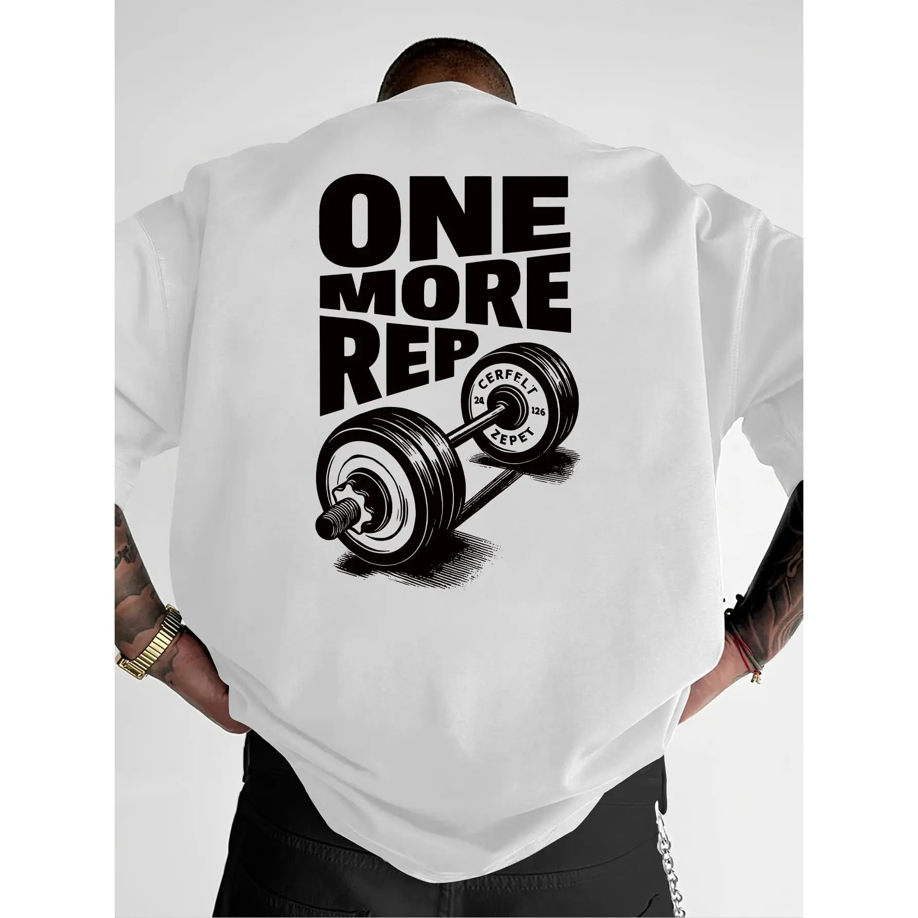 180g[100%cotton]Men's Fun Gym Workout T-Shirt - "ONE MORE REP" Weightlifting & Dumbbell Print, Athletic Fit Round Neck, Breathable Summer Tee for Bodybuilding, Weightlifting & Casual Fitness Apparel - Gym Shirts for Men