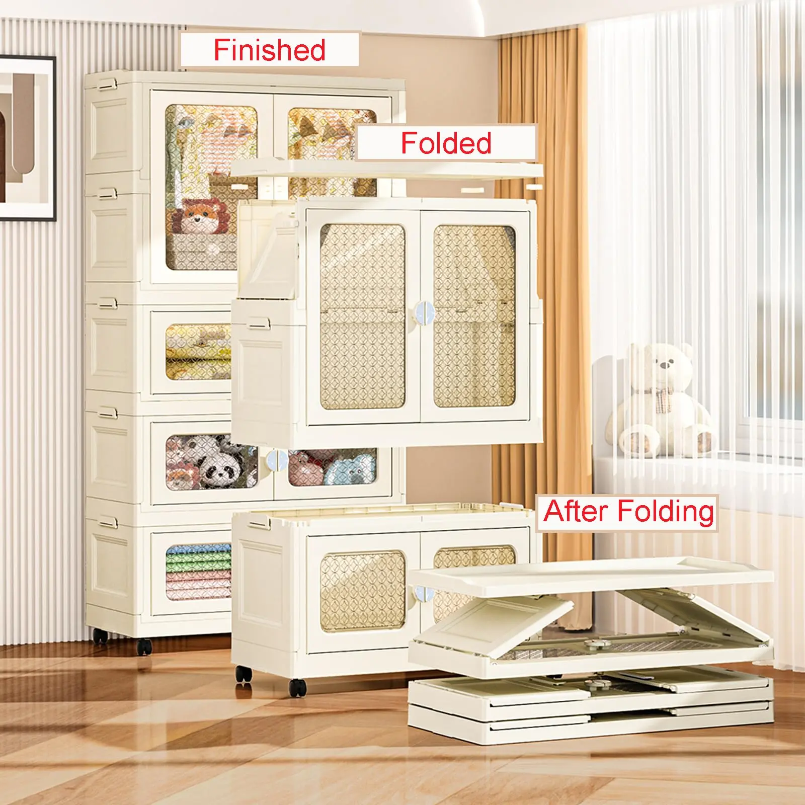 ·【2 Height Design】1 cabinet and 1 box, this large closet organizers Hanging Rods is Ideal for baby clothing hanging and storage, also for adult clothing storage. enough for daily kinds of things storage. Plastic lidded home storage bins are designed with handle and clear door design, is for daily easy access.