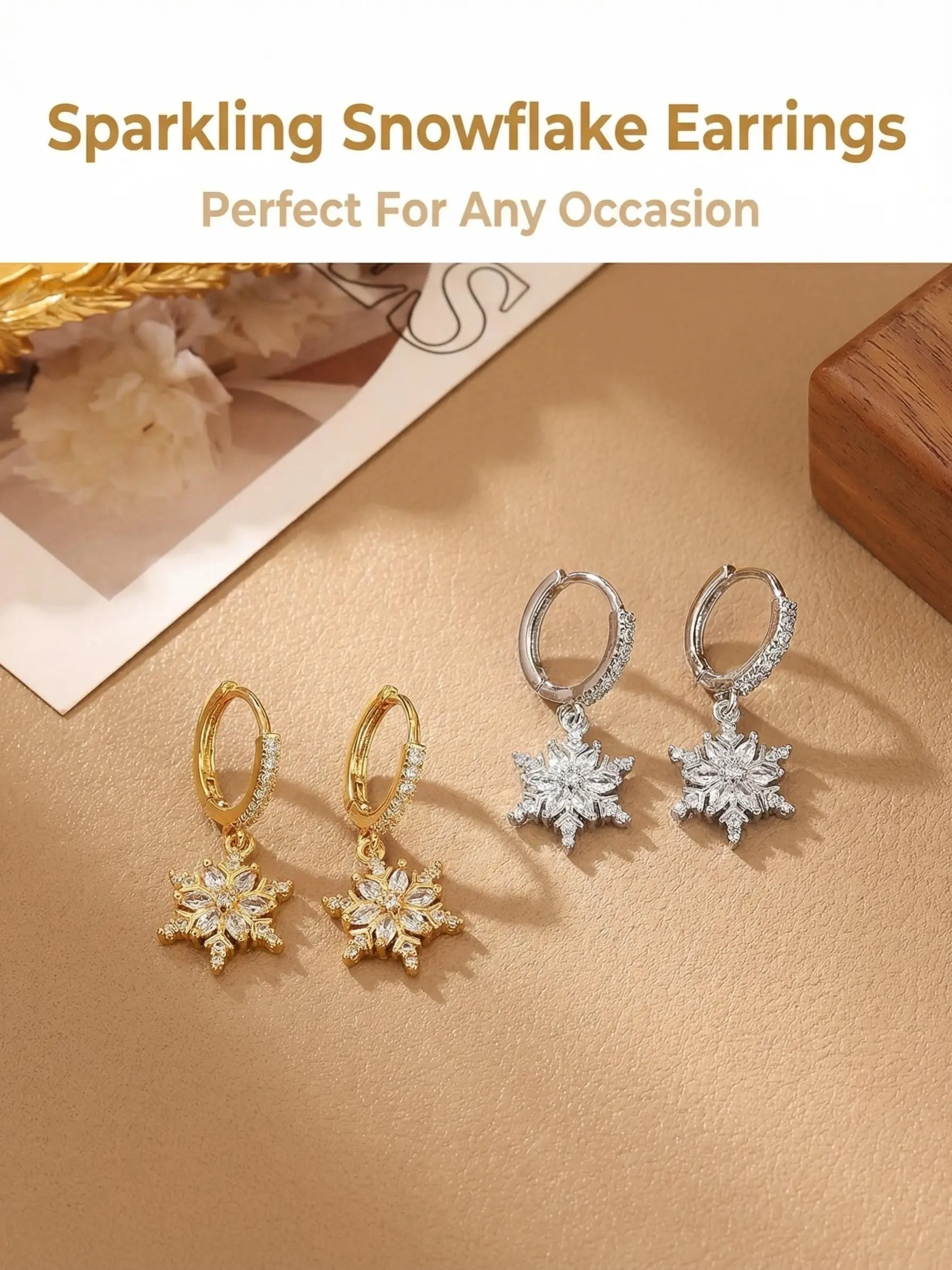 Elegant Rhinestone Snowflake Earrings, Luxurious Zircon Ear Studs, Plated, European and American Style Jewelry
