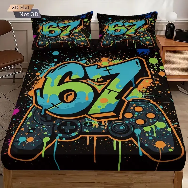 3-piece gaming style game controller bed sheet set (1 * bed sheet+2 * pillowcase, no core) gaming style bedding set/mattress protective cover, soft and breathable, suitable for home and room use
