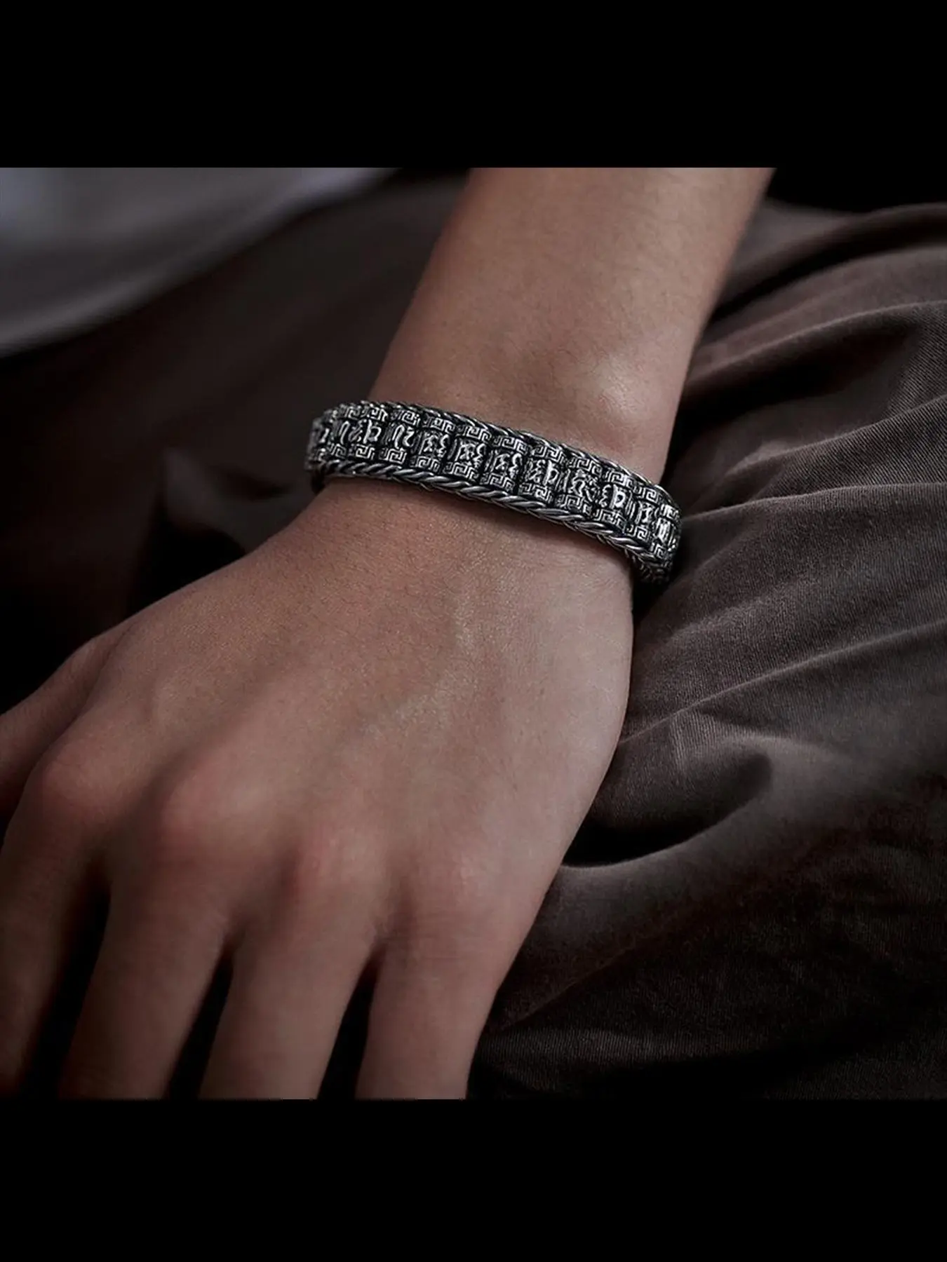 New Handmade Braided High-End Road Luck Bracelet for Men, Six-Word Mantra Lucky Bead, Vintage Jewelry Accessory