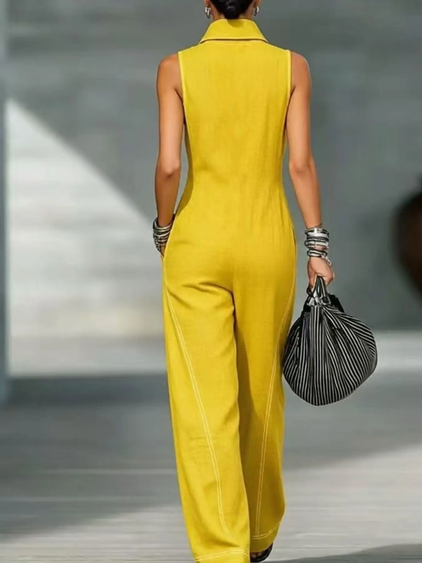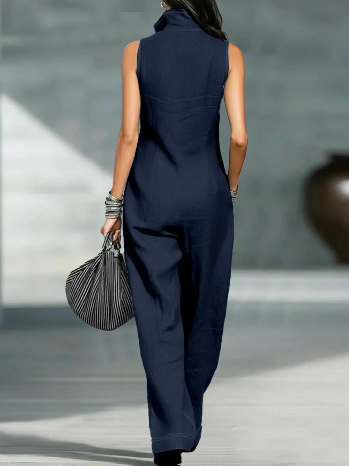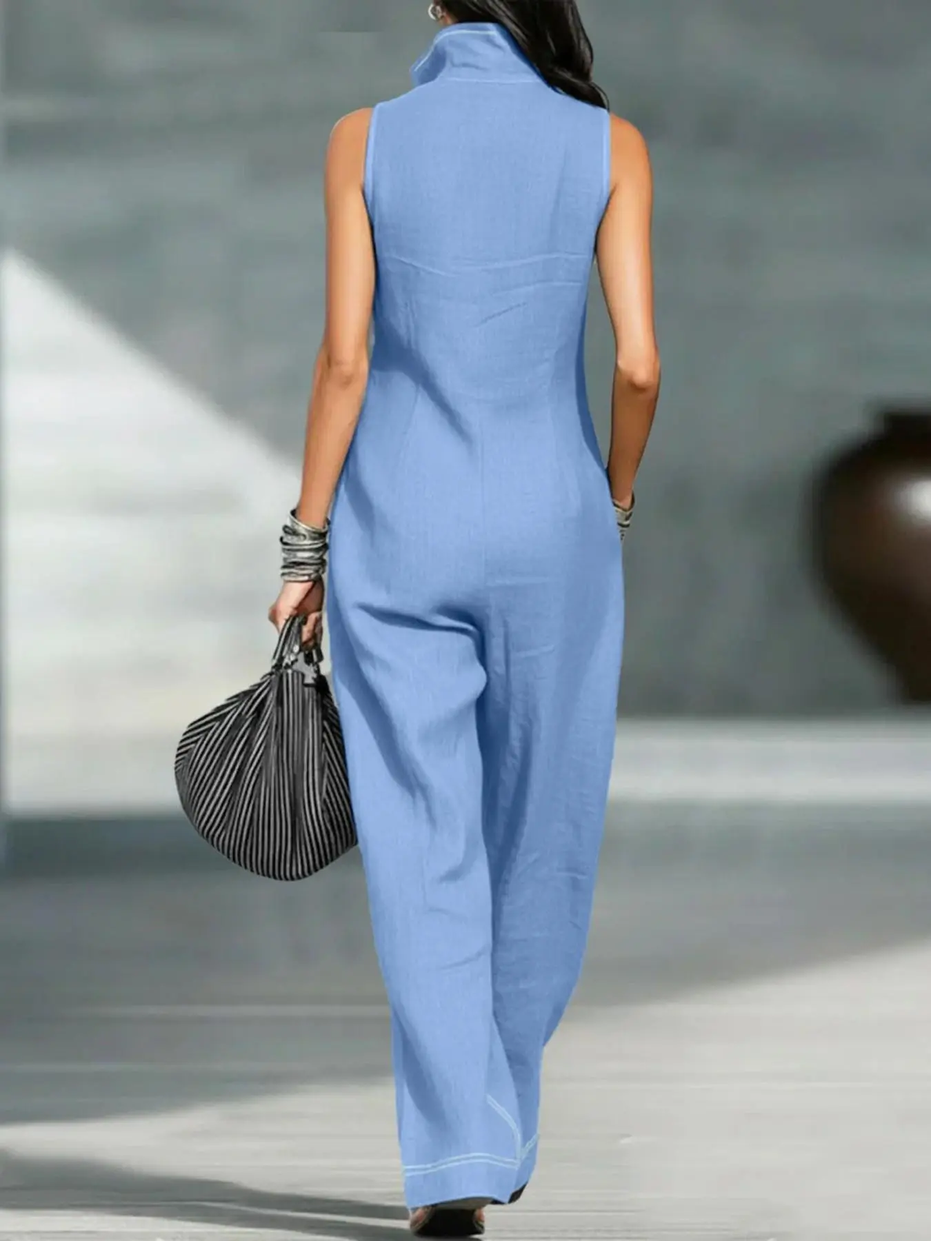 Women's Stand Collar Sleeveless Zipper Casual Loose Bodysuit, Comfortable and Stylish One-Piece for Daily Wear
