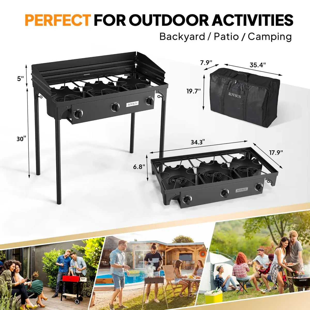 ROVSUN 3-Burner 225000 BTU Windproof Outdoor Camping Propane Stove with Bag