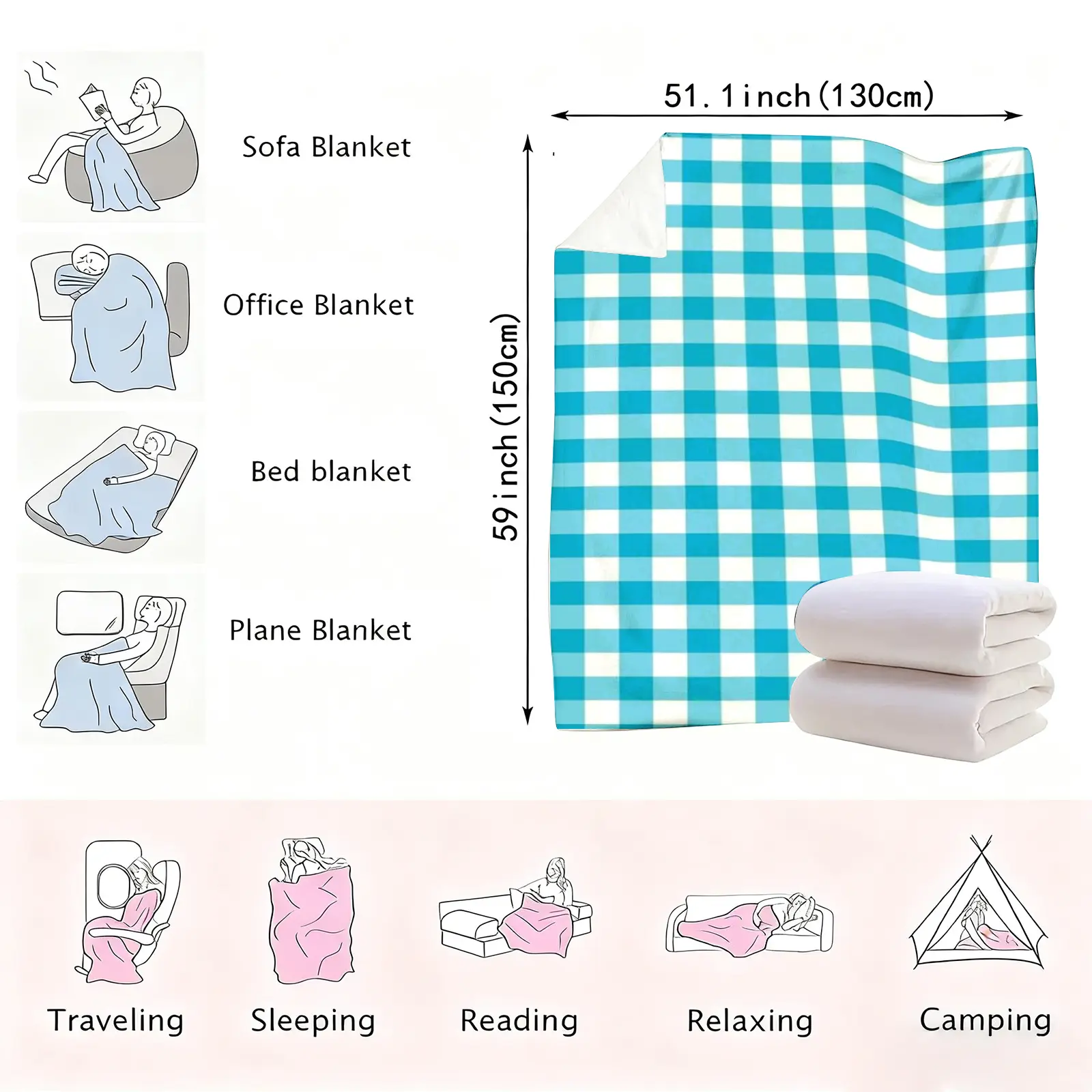 Blue White Checkered Flannel Blanket, Ultra Soft Warm Plaid Throw for All Seasons, Ideal Blanket for Sofa Nap Camping & Gift, Lightweight Breathable for Women Men Teens