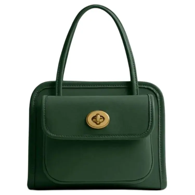 ·Vintage-inspired turn-lock clasp with polished metal hardware