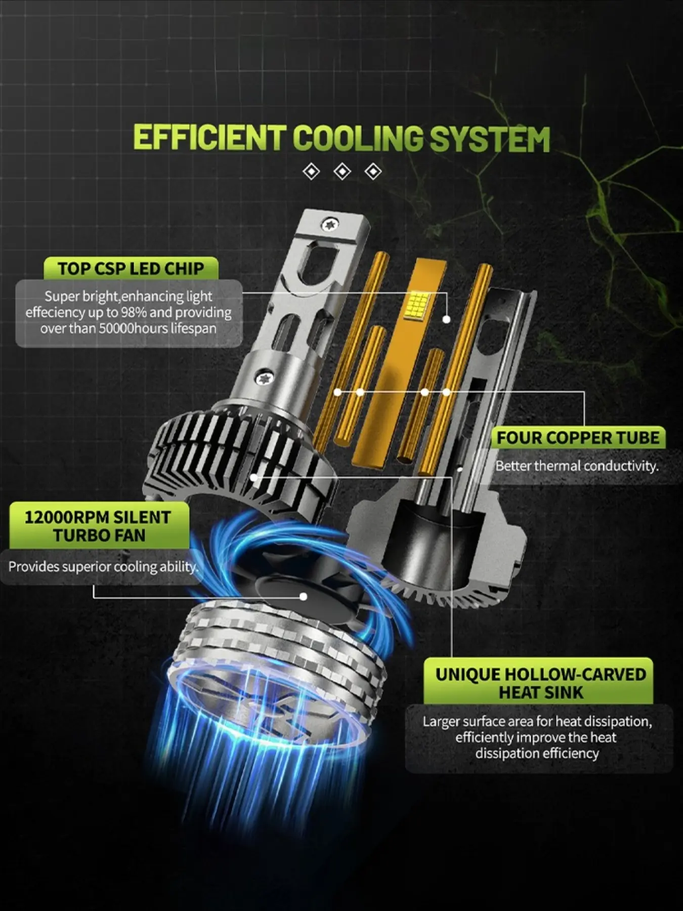2pcs High Power LED Car Lights, H7/h4/h11/9005/hb3/hb4/hb5/h13/turbo Bulbs, Canbus Compatible, 6000k Light, 12V Automotive Lighting, Led Headlights Bulbs