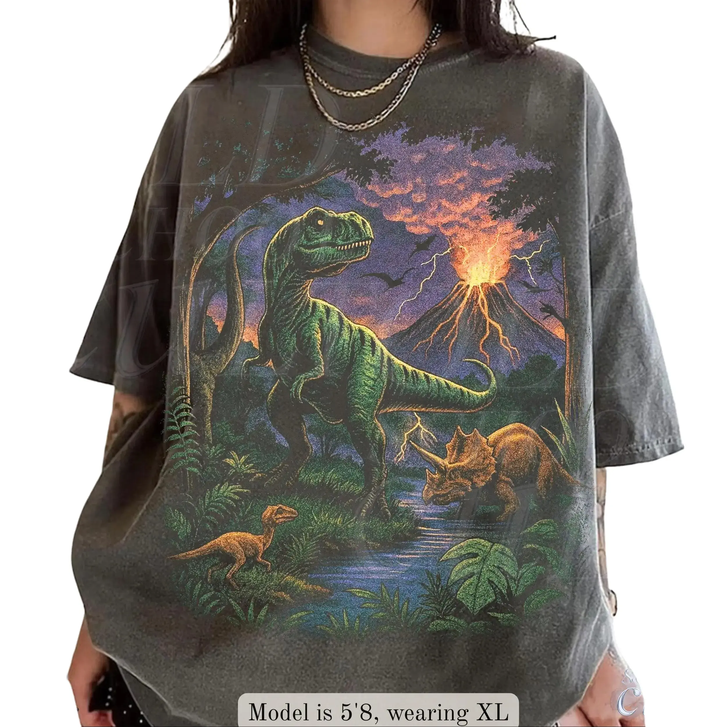 5. Vintage Jurassic Dinosaur 90s Graphic T-Shirt, Retro T-Rex & Triceratops Shirt, 90s Prehistoric Graphic Tee, Dino Top, Nostalgia Nature Gift