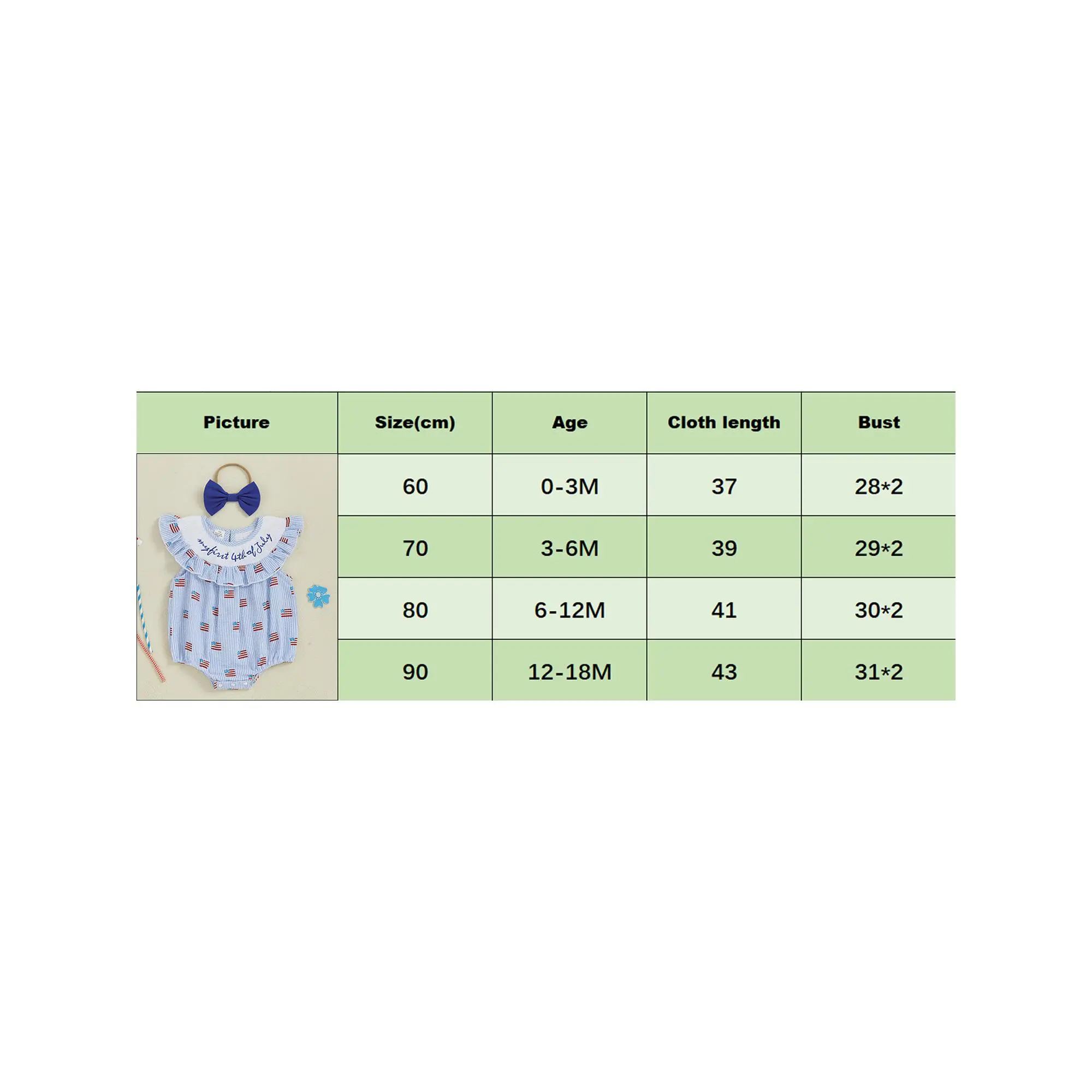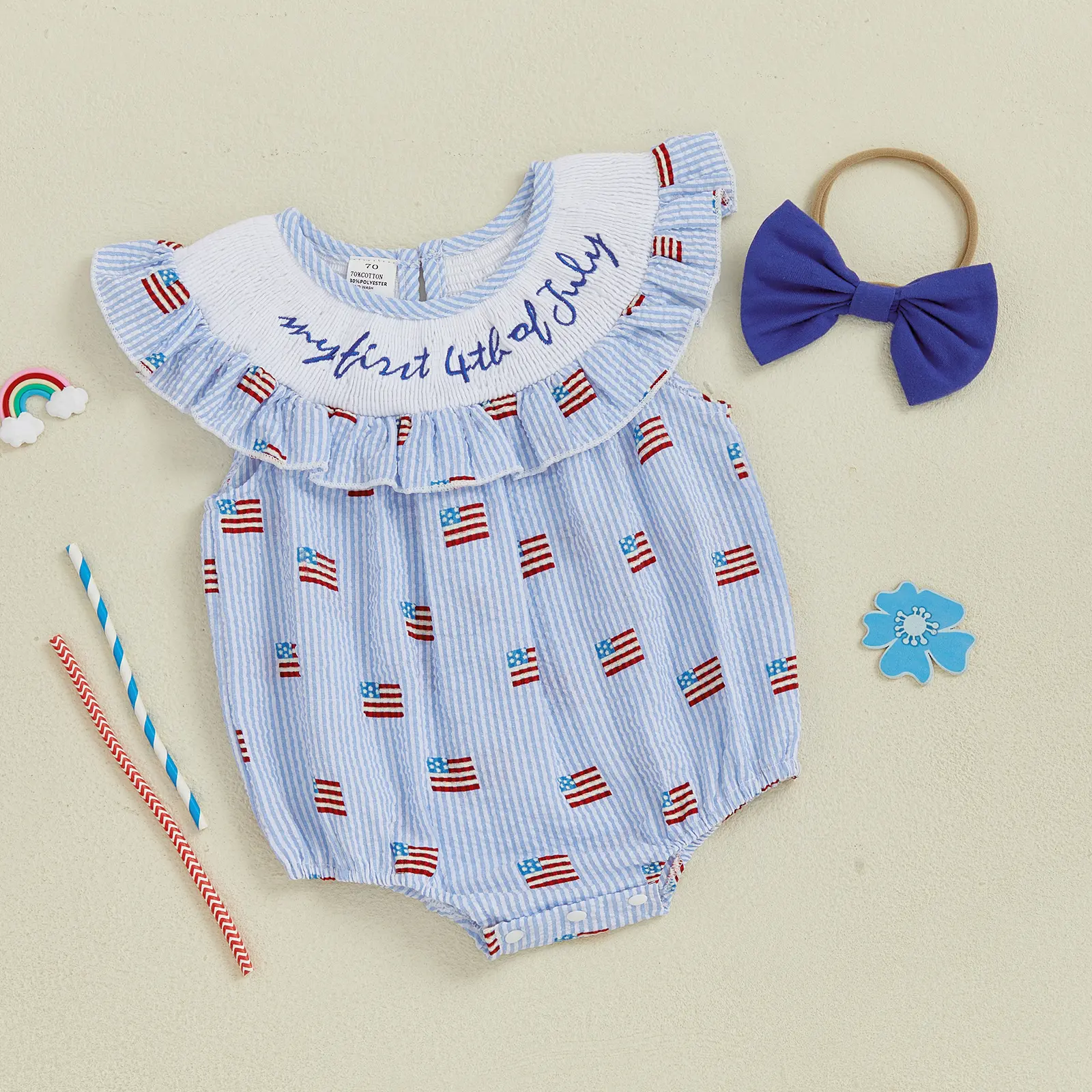 Baby Girls Patriotic Romper Summer Casual Flag Stripe Print Fly Sleeves Jumpsuit and Headband Set Fashion Clothes