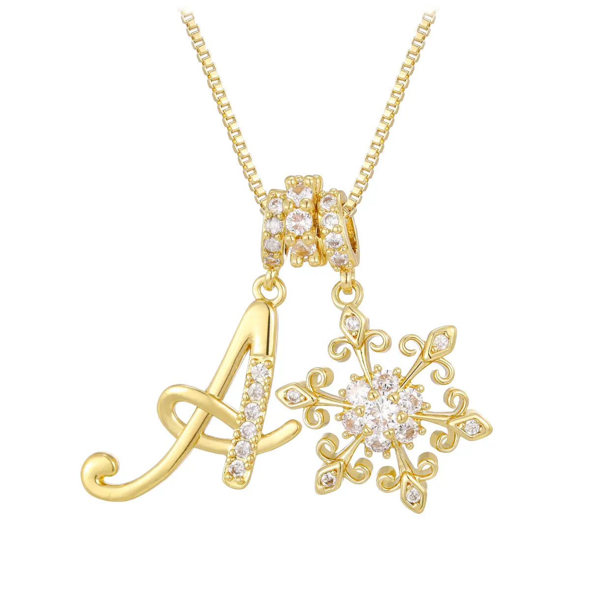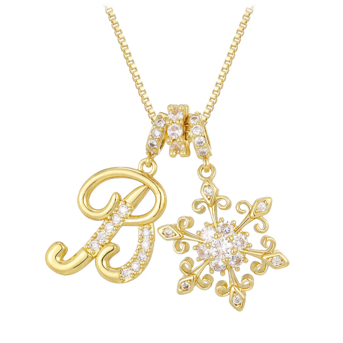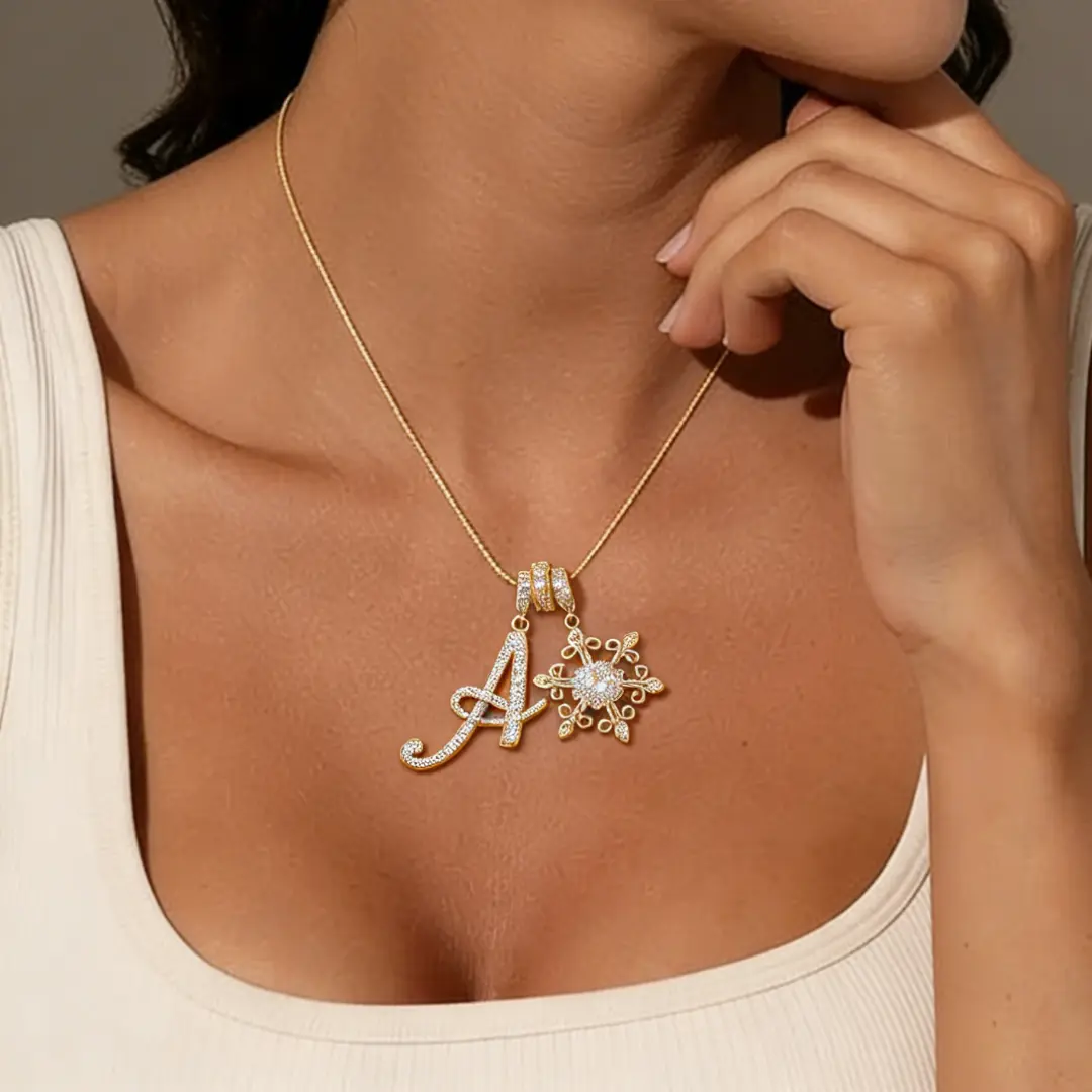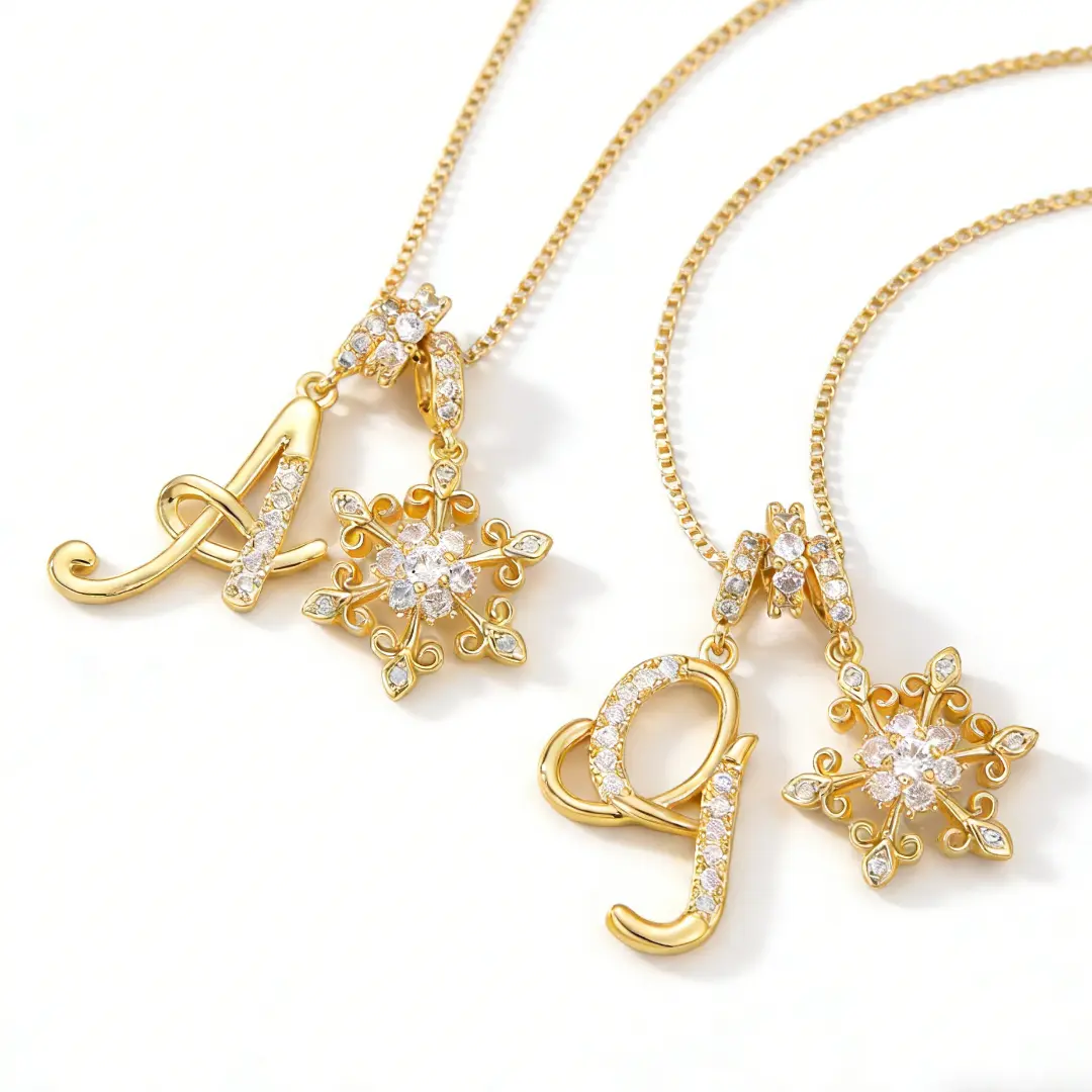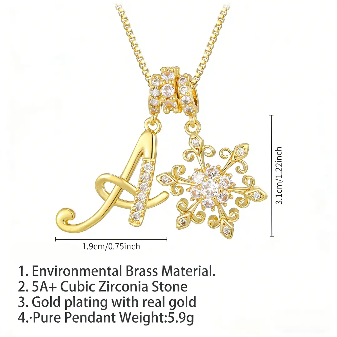 Add a personal and elegant touch to your jewelry collection with thispersonalized initial letter necklace for women.Featuring a beautifully designedgold-plated letter pendantpaired with a delicatesnowflake charm, this necklace blends individuality with a soft, feminine sparkle.The detailed design makes it a stylish everyday accessory while also feeling special enough for gifting.